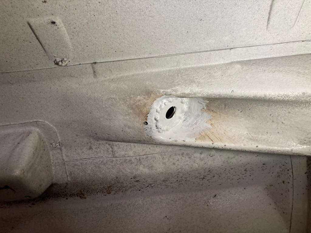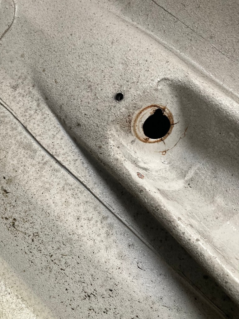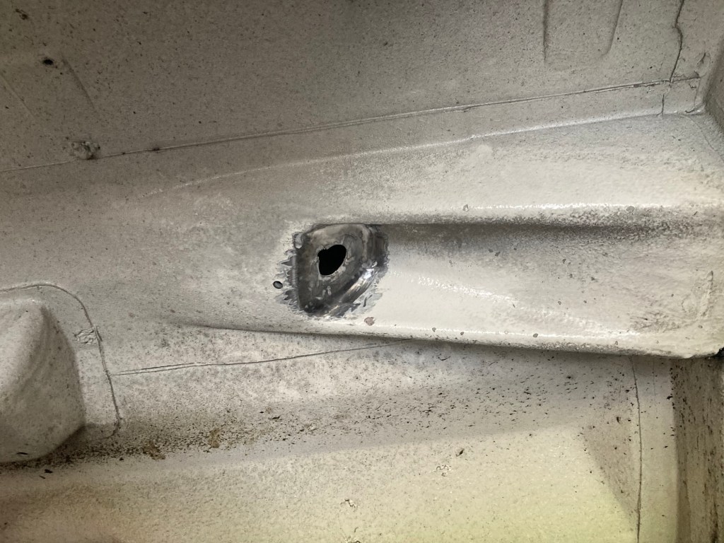 Derart frisch motiviert, stand noch die Anbringung der Verstärkung für den hinteren rechten Stoßdämpfer an. Die Entscheidung ist gegen meine letztwöchig vorgestellt Variante gefallen, aber Schritt für Schritt. Zunächst musste die Lackierung entfernt werden …