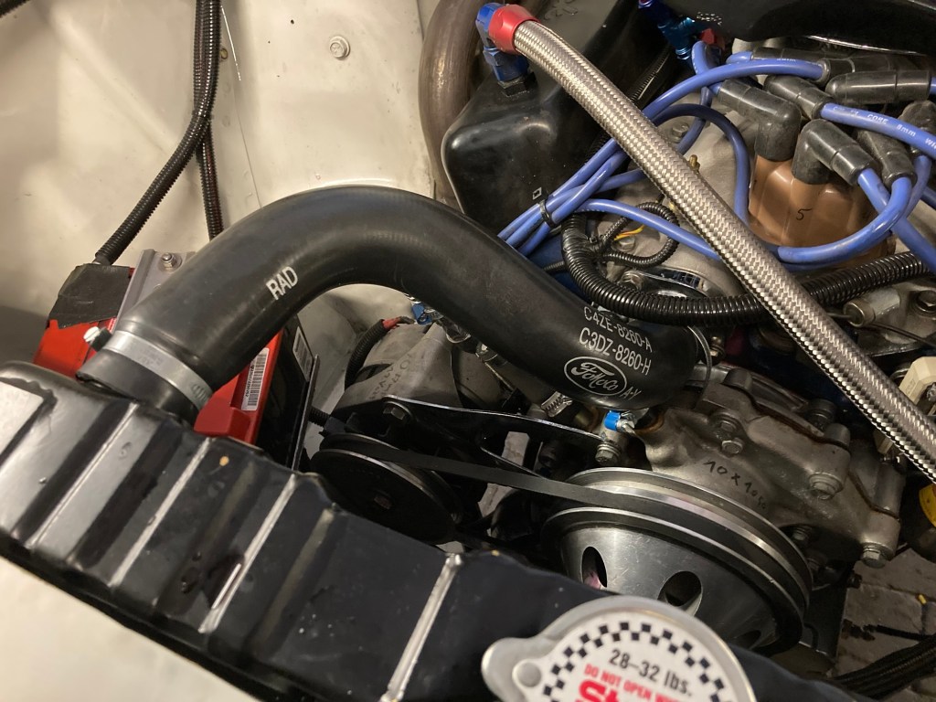 Bestellt hatte ich am Sonntag vergangener Woche Wasserschläuche von Samco, einen neunzig Grad Reduzierer und einen sechzig Grad Bogen, sowie ein Verbindungsstück aus Aluminiumrohr. All das war flugs in den Falcon eingebaut, hier zu sehen: