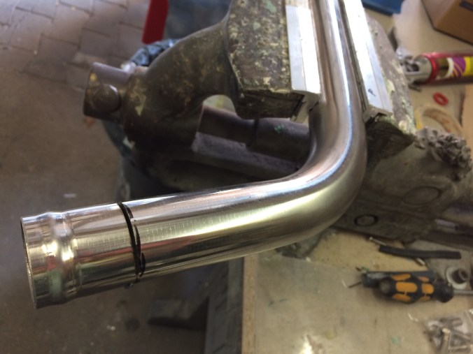 Der 76er Schlauch kommt auf den großen Stutzen, der 51er in den kleineren. Okok, das sieht später niemand mehr, aber schön ist es trotzdem.