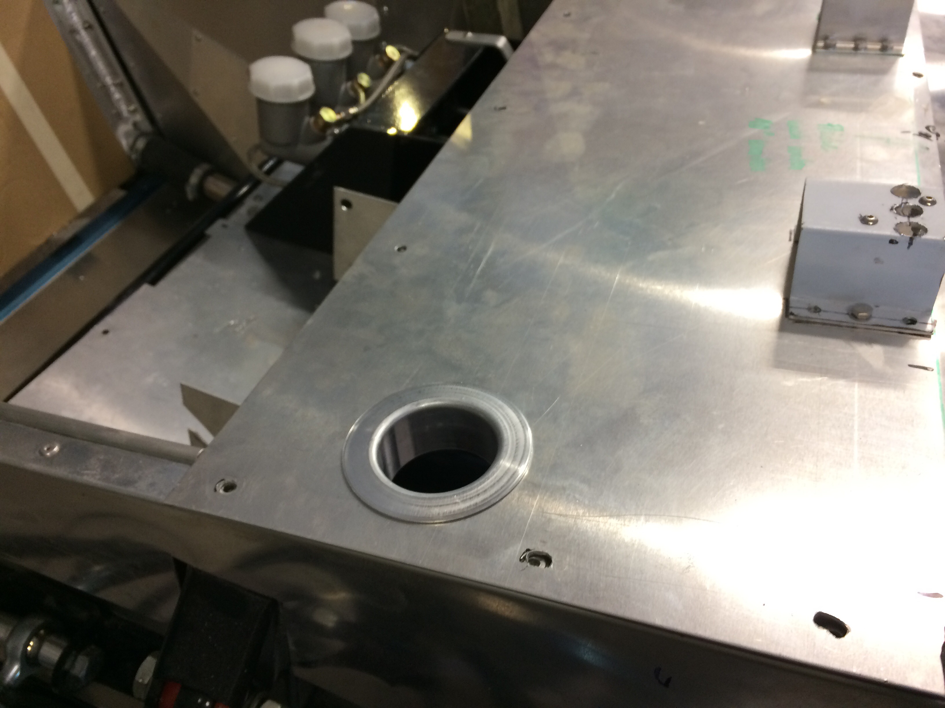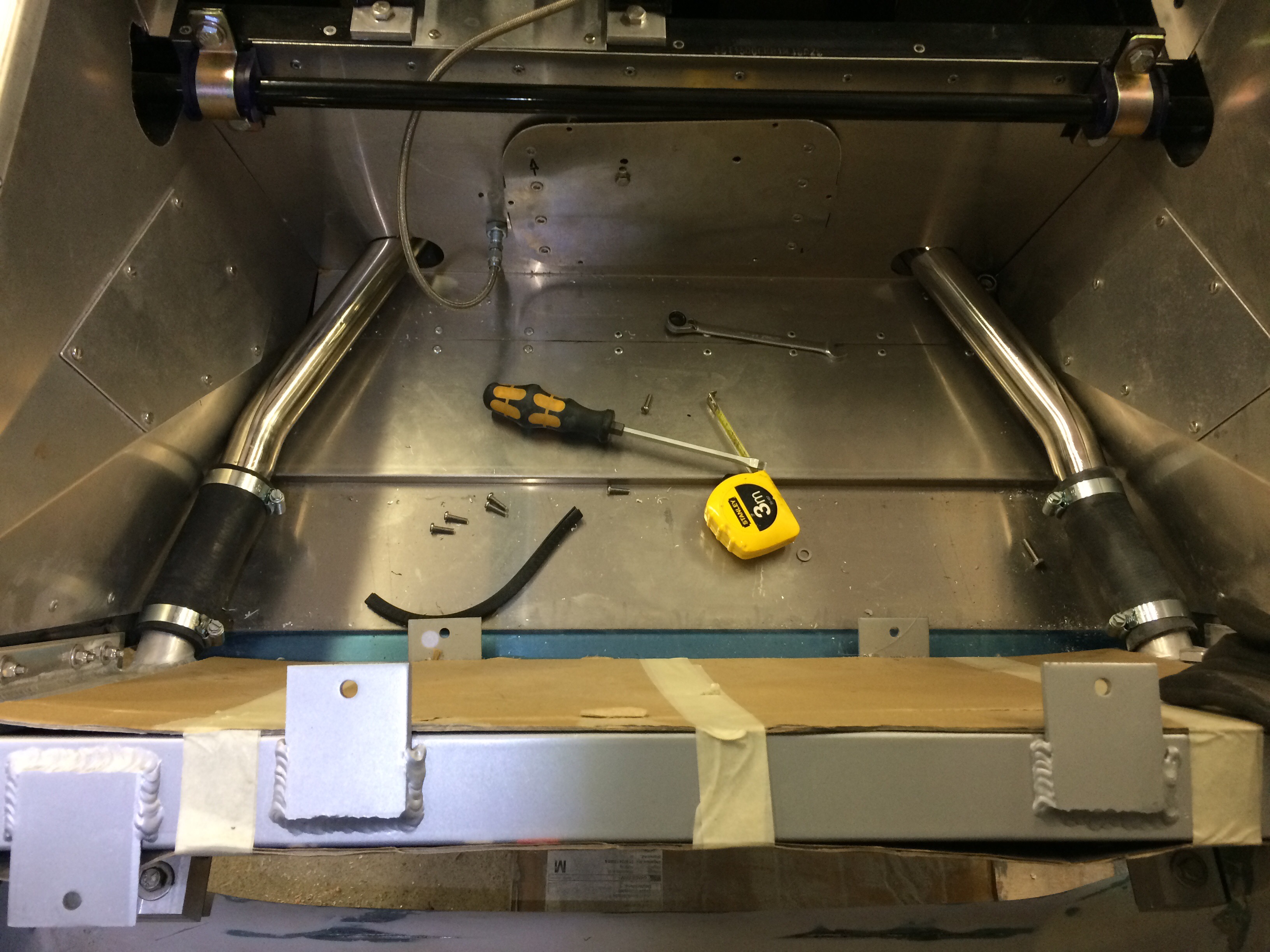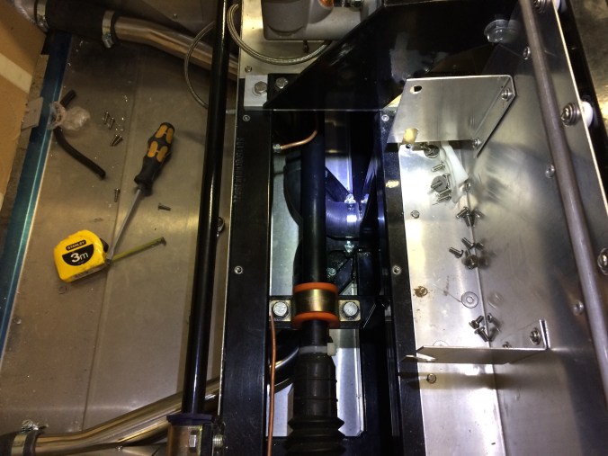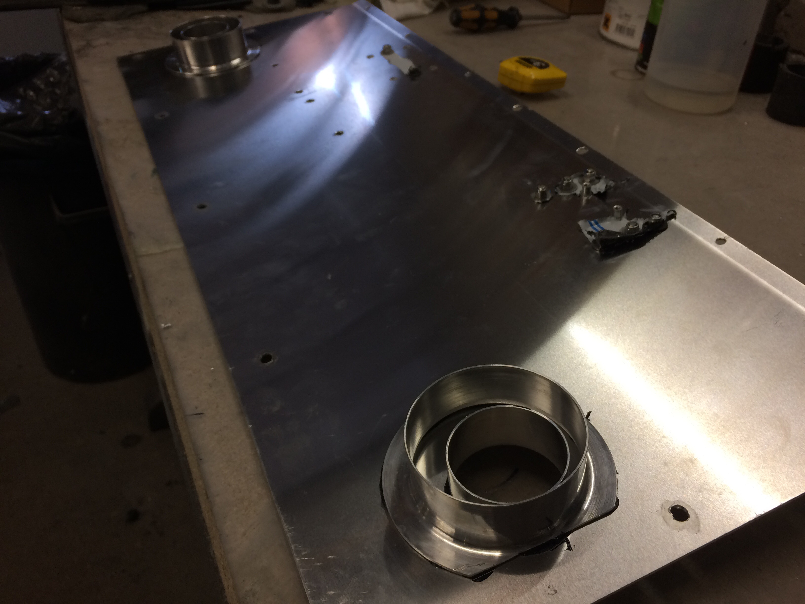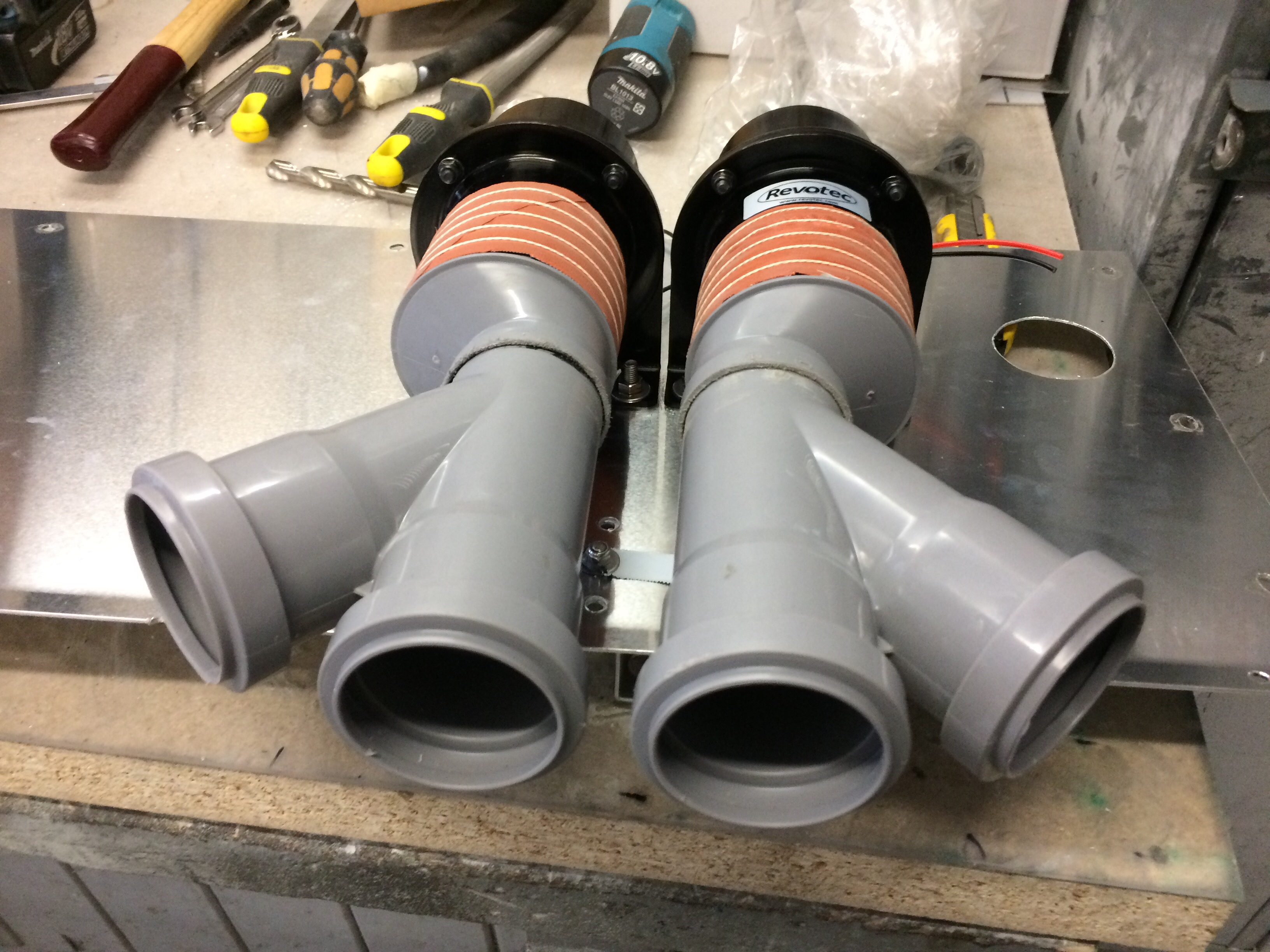 Im letzten build log hatte ich ja von der Belüftung des Fahrgastraumes berichtet, also machen wir da heute gleich weiter. Um den Luftstrom vom Einlass im Aluminiumblech oberhalb der Pedallerie zum Lüfter zu bekommen, ist eine kurze Wegstrecke zu überbrücken, die allerdings die Besonderheit aufweist, dass der Aluminiumblecheinsatz mit D_aluminium = 51mm, der Lüfter mit D_luefter = 76mm daherkommt (ich habe hier eine eher wissenschaftliche Schreibweise gewählt, damit es deutlich wird). Die Lösung besteht in einer sogenannten „Schlauch-in-Schlauch-Lösung“ bei der der kleinere Schlauch in den größeren hineinragt. Zur Befestigung habe ich mir im Aluminiumblech oberhalb der Pedallerie dazu diese Lösung einfallen lassen: