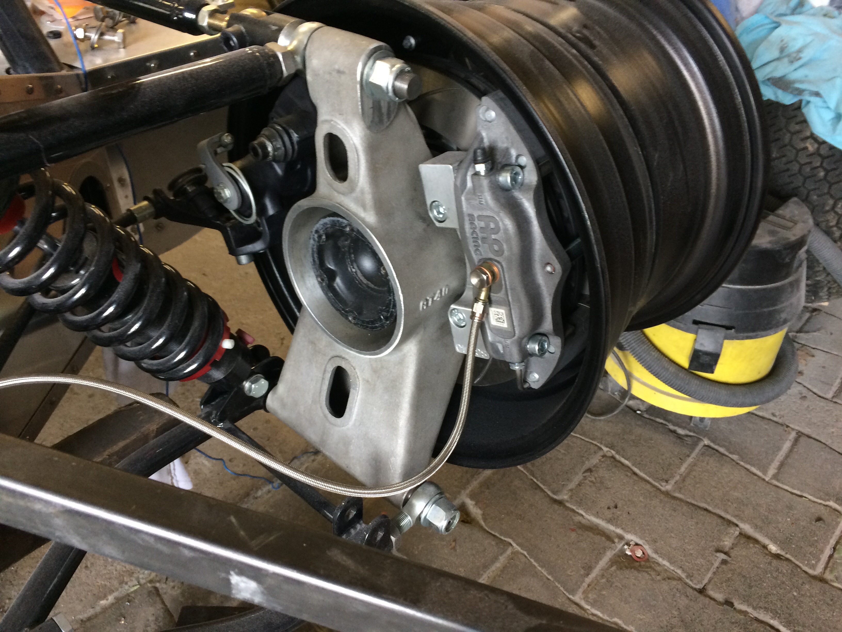 Da alle meine verfügbaren Verschraubungen fast verbaut waren (neue sind bestellt), entstanden zum Schluss des ereignisreichen Tages die Verbindung der Benzinpumpe rechts mit dem inzwischen verschraubten Catchtank und der Anbau der beiden Motorlager, schwarz lackiert (hestellerseitig ist vorgesehen, dass der Motor an 16 M8-Schrauben hängt, was bei mir irgendwie ein mulmiges Gefühl verursacht. Ich habe 10.9er Schrauben und 10er Muttern verbaut, und der Rest ist Vertrauen, schliesslich bin ich schon der achtzehnte Kunde bei Mick):