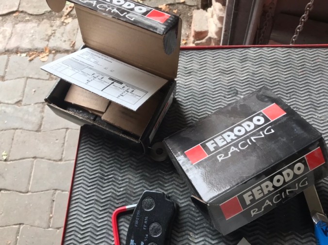 Dann habe ich noch die Bremsbeläge montiert, so richtig racing: