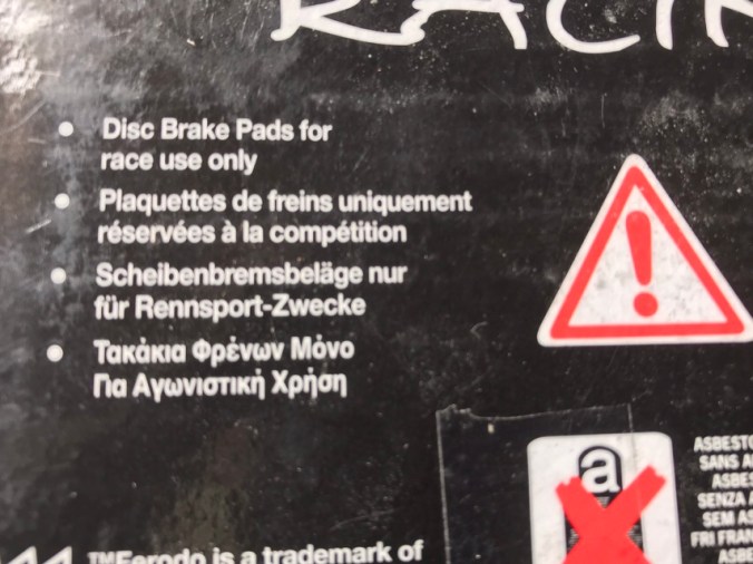 Einfach eine Schraube lösen, die Beläge einschieben, Schraube montieren, und race!!! Auf der Verpackung steht das, und es ist zu ignorieren: