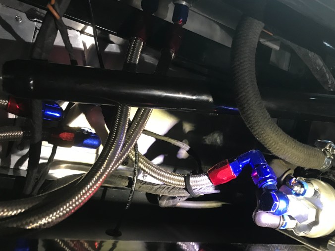Um dann ist der linke Tank noch mit 20 Litern besten 102 Oktankraftstoffs befüllt worden. Den Kanister trage ich demnächst nochmal zur Tankstelle – das ist der Fluch der zwei Kraftstofftanks ⛽️⛽️. Die montierten Rohre und Schläuche zwischen Einfüllstutzen, Tank und Pumpe wiesen übrigens zunächst keine Undichtigkeiten auf, ein Traum!!