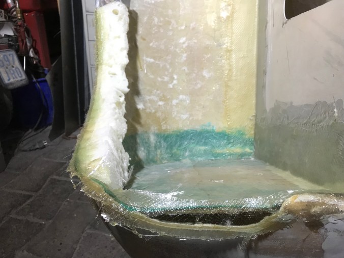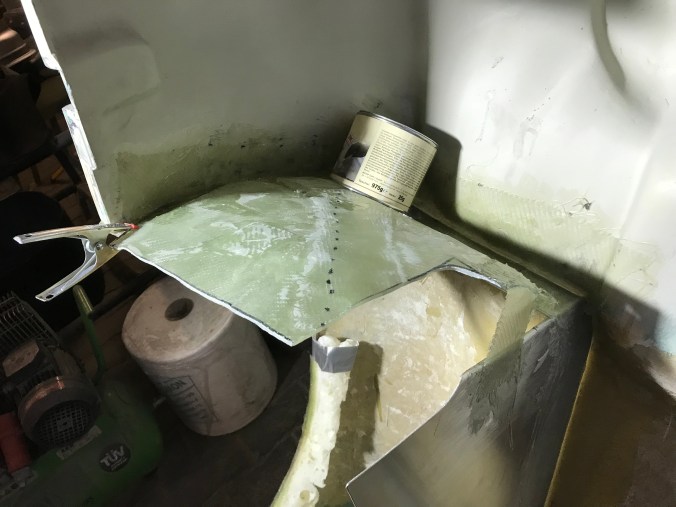 Traditionell klingt das Jahr auch mit einem Sylvesterbautag aus, so auch am 31.12.18. Als Ergebnis ist der rear clip fertig laminiert, es stehen nur noch kleinere Schleif- und Glättarbeiten an.