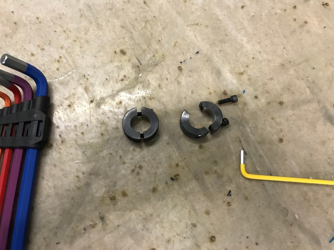 N hatte sich freundlicherweise bereit erklärt, zwei Stellringe mit dem Durchmesser 18mm auf 19mm aufzubohren, da dieses offenbar dem britischen 3/4 inch entspricht, und das ist derjenige Durchmesser, den die Scharnierstrebe des front clips aufweist. Die Stellringe …