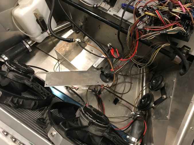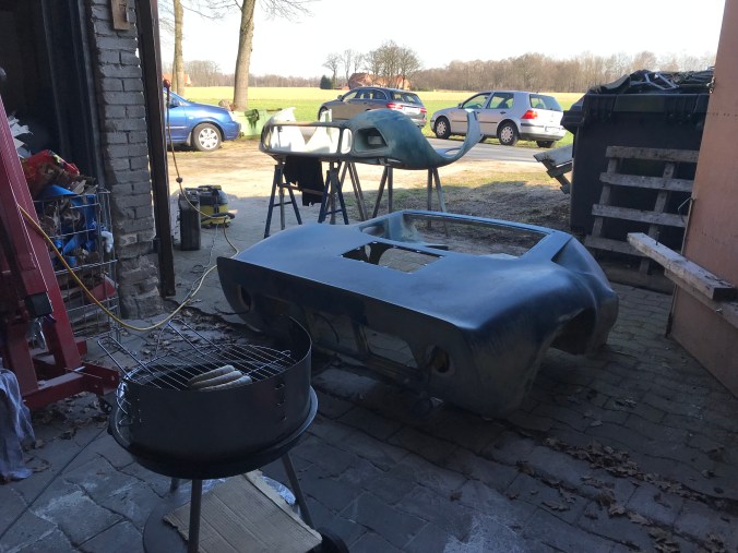 Da dies so klar vorhersehbar war, hatte ich am vergangenen Wochenende schon einmal Wärmeschutzmaterial für den rear clip bestellt, um gegen die Motorwärme zu isolieren (OKOK, der rear clip ist also noch nicht ganz fertig, aber fast). Die seitlich an den Radhäusern anzubringenden Matten sind schon geliefert worden …