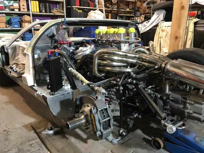 Nach dieser Übung, die an der Werkunterricht in der Schulzeit erinnerte, habe ich dann die hinteren Federdämpfer verstellt, so dass das Fahrzeug ca. 8mm höher steht, um Kollisionen zwischen rear clip und Hinterrädern bzw. zwischen Getriebequerträger und Straße zu unterbinden. Irgendwie habe ich die Vorahnung, dass das noch nicht ausreicht, aber das wird sich später zeigen: