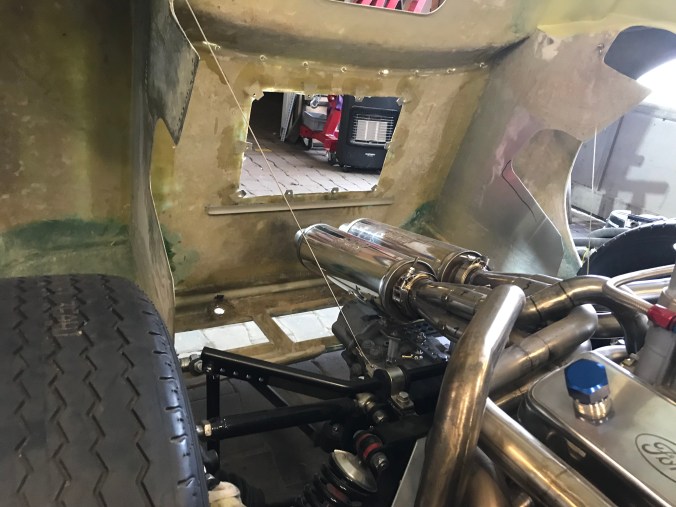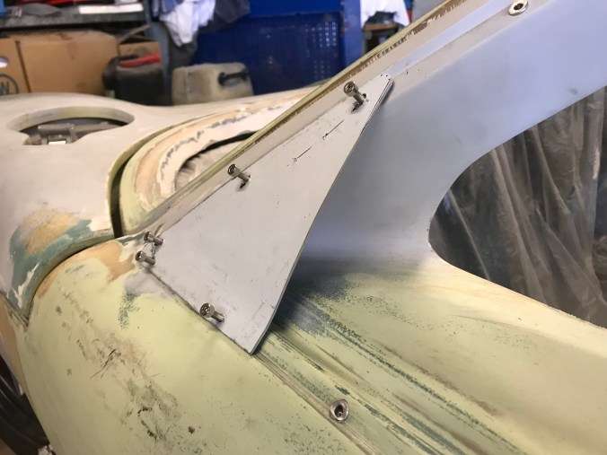 Im Groben muss noch folgendes passieren: das oben gezeigt auf der linken Seite duplizieren, Spaltmaß zwischen rear clip und Schweller anpassen, Türdichtungskonzept überlegen, Belüftung montieren, DZUS wieder anbringen, Gitter am Belüftungskanal des rear clips bauen. Klingt machbar, optimistisch betrachtet. Wie sagte Mick: “ cars always take longer than expected“. Wie wahr.