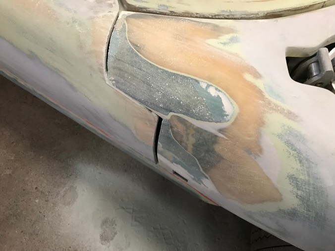 Auf dem Boden erkennt man die abgetragene Mischung aus Faserspachtel und Laminat, mein aktiver Beitrag zum Leichtbau 😁).