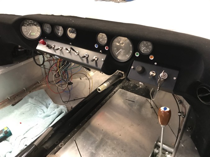 Dann habe ich mich mit B’s Mithilfe an die Montage der elektrischen Bedienelemente im Cockpit gemacht – ein Traum in schwarz: