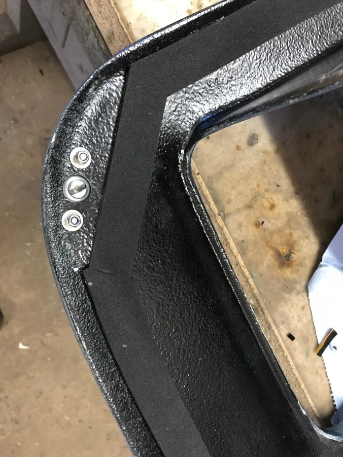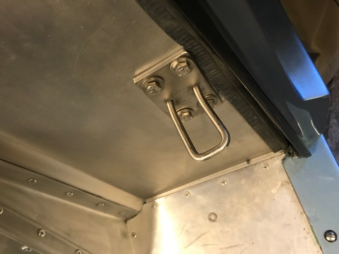 Ach ja, und dann kann ich noch von der Montage der „Türanschläge“ berichten, deren Halterungen ich im Bootszubehör gefunden habe (salzwasserbeständig 😉). Nach deren Montage sind Kabelbinder die Interimslösung – einige Übergangslösungen haben sich so sehr bewährt, dass sie dauerhaft geblieben sind …