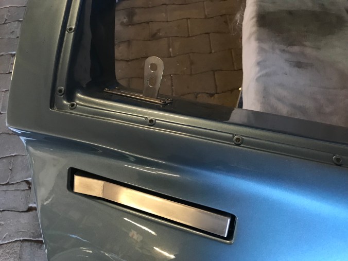 Zur Türenmontage waren zunächst die Schlösser zu re-montieren. Da der erste Verbau bereits Jahre zurückliegt, war eine gewisse Neuanlernphase notwendig, die erfreulicherweise recht kurz ausfiel. Hier das Ergebnis auf der rechten Fahrzeugseite (den Türöffner innen habe ich stilgerecht gelocht):