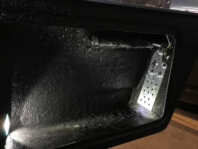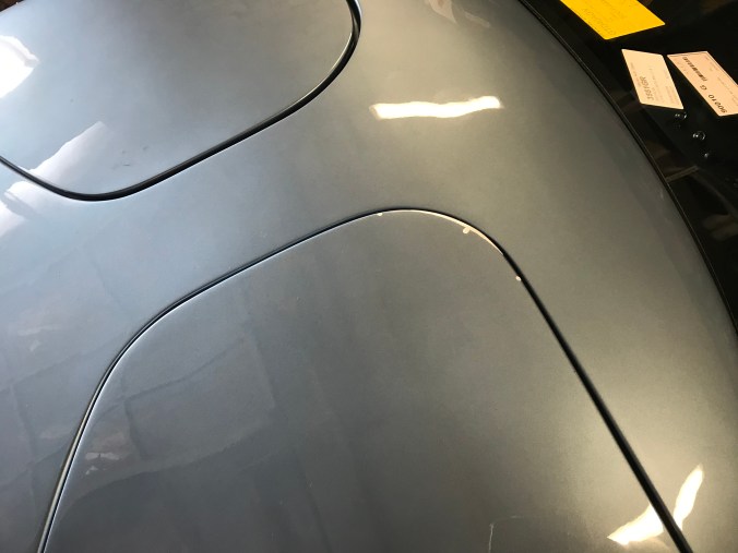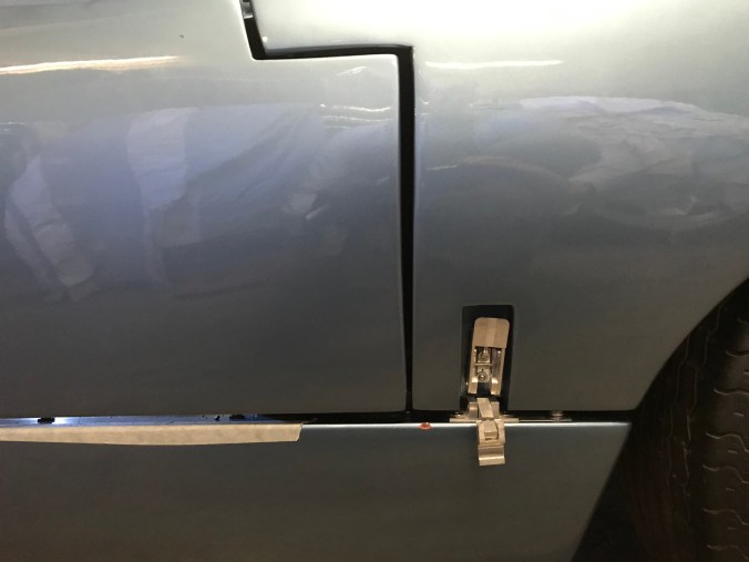 Die rechte Tür bleibt das Sorgenkind. Erst heute wurde mir klar, das sie, da am Scharnier nach oben verschoben (reim dich, oder …), beim Öffnen mit dem front clip kollidiert, und dass der Spalt zwischen Tür und front clip so ausschaut: