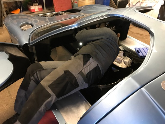 Letztlich stand die Einstellung der Lenksäule auf der Agenda des heutigen Bautages, da das Lenkrad, wie im letztwöchigen blog zu lesen, noch insgesamt zu tief sitzt.