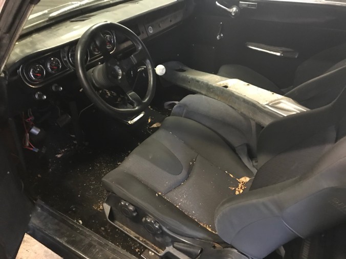 In den Tiefen des Internets habe ich Fotos von Renn-Falcons gesehen, in denen der hintere Sitzquerträger aus Gewichtsgründen entfernt worden ist. Da die Rücksitzbank in meinem Fall auch nicht gebraucht wird, die auf den besagten Querträgern aufliegt, stand deren Entfernung nichts mehr im Wege. Hier ein Foto der Querträger, von unten links nach oben rechts verlaufend: