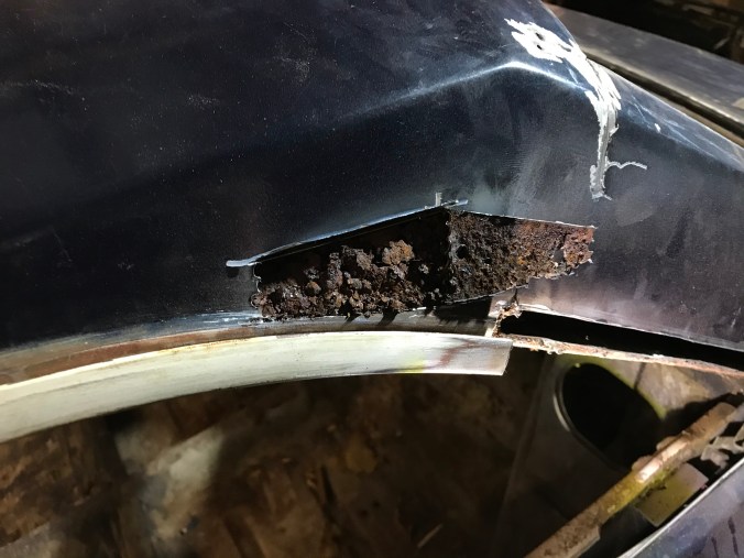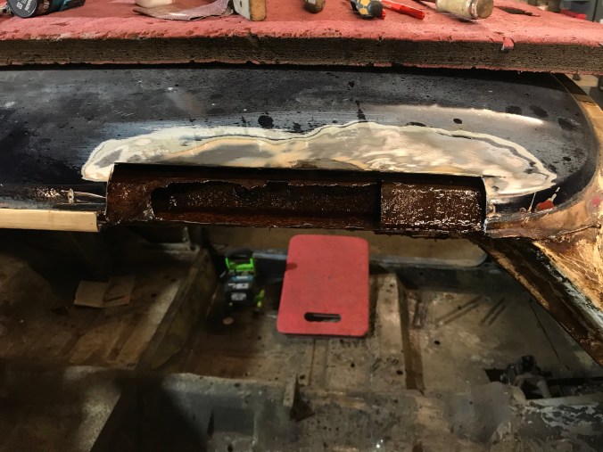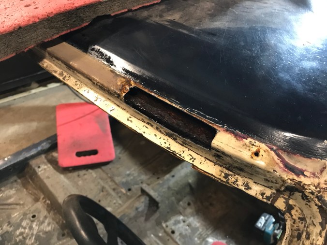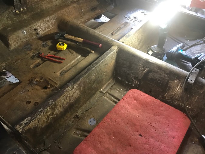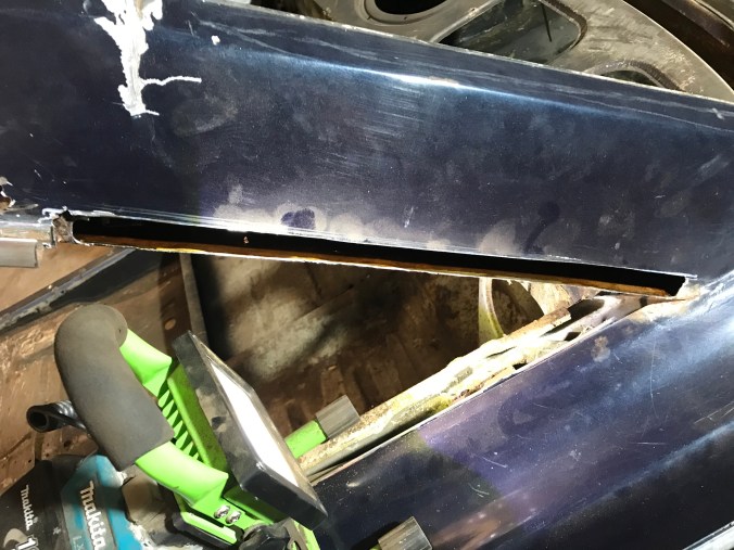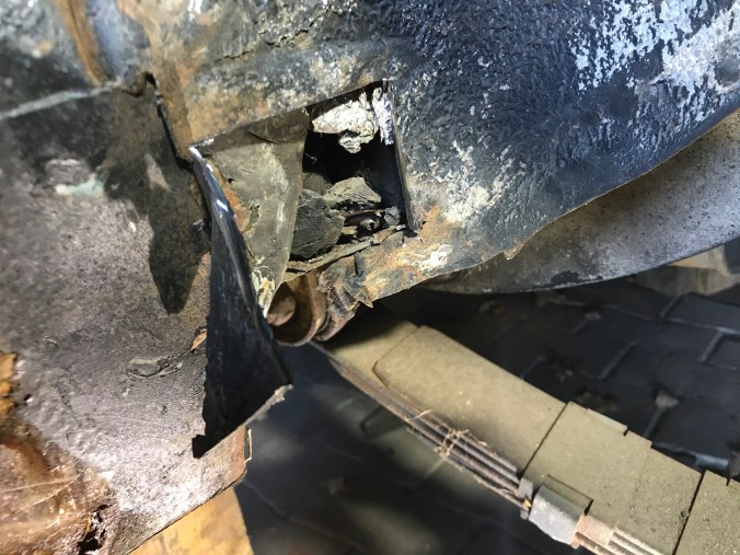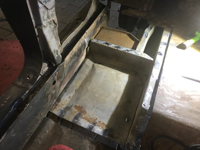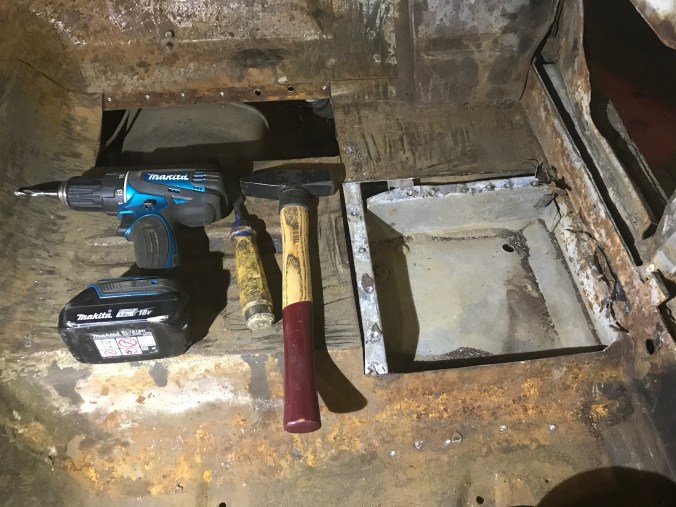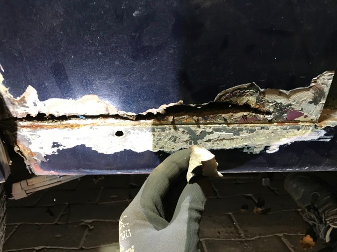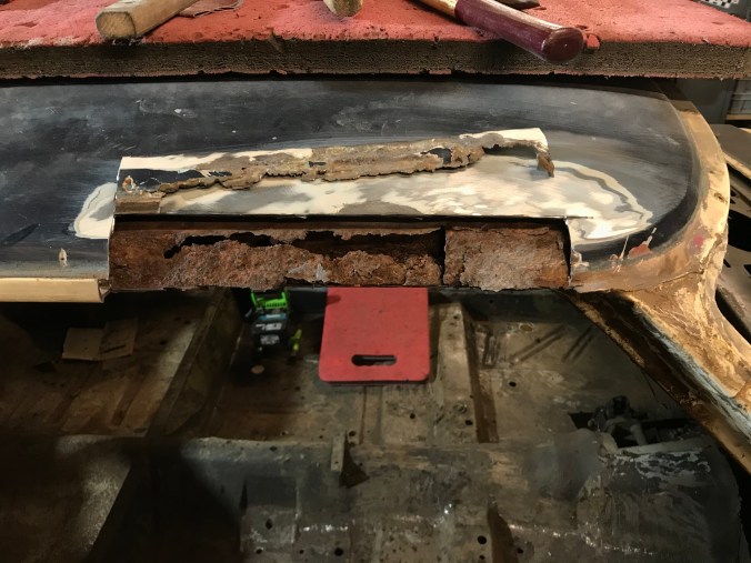 Nach Aufbohren der Punktschweissungen und Heraustrennen des Rostbleches kann ich dies hier als Tagesergebnis kommunizieren: