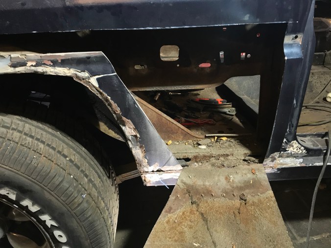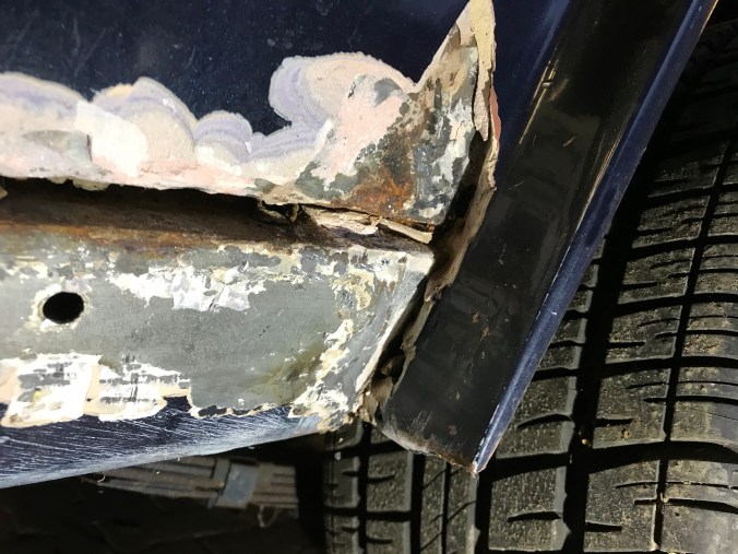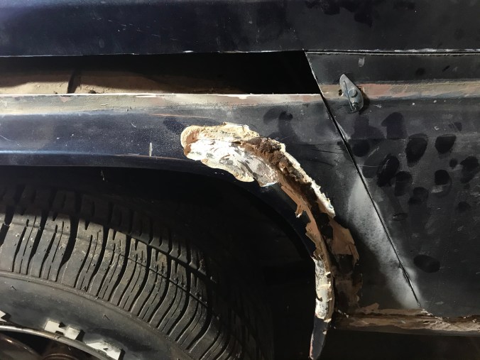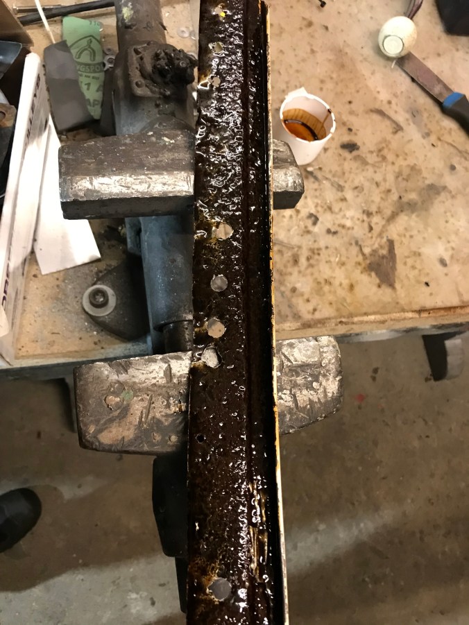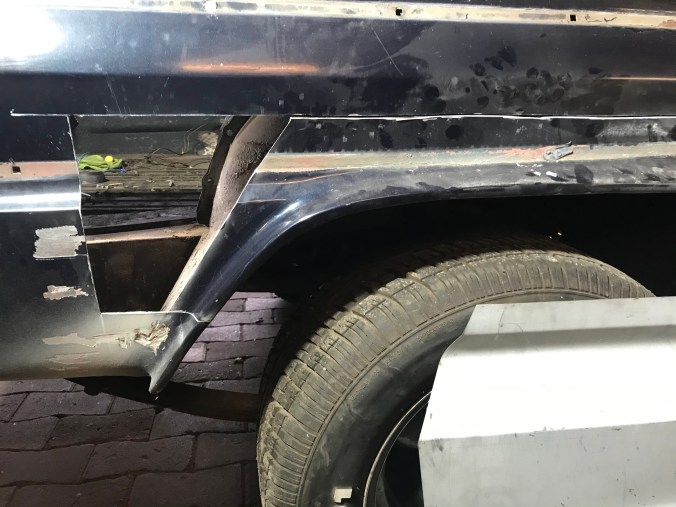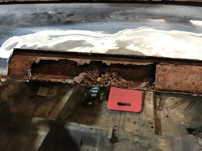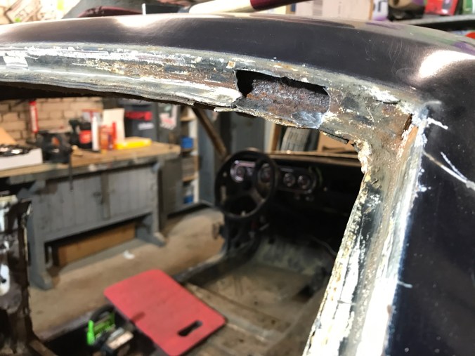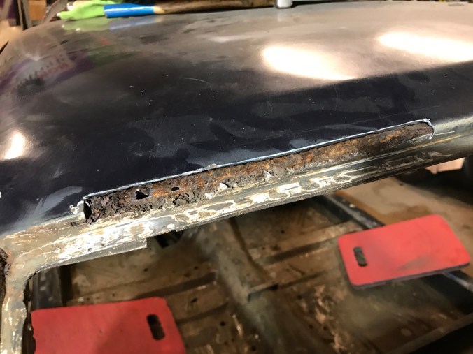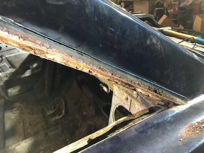Nach Aufbohren der Punktschweissungen und Heraustrennen des Rostbleches kann ich dies hier als Tagesergebnis kommunizieren: