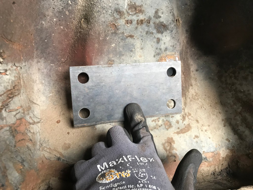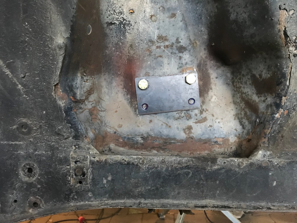 Das gleiche gilt für das selbstgebaute Reparaturblech, das den Rosthaufen unter dem ursprünglichen Batteriehalter ersetzen wird: