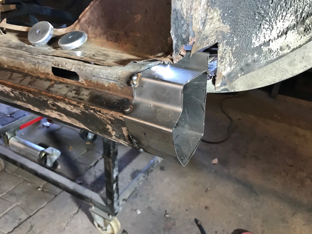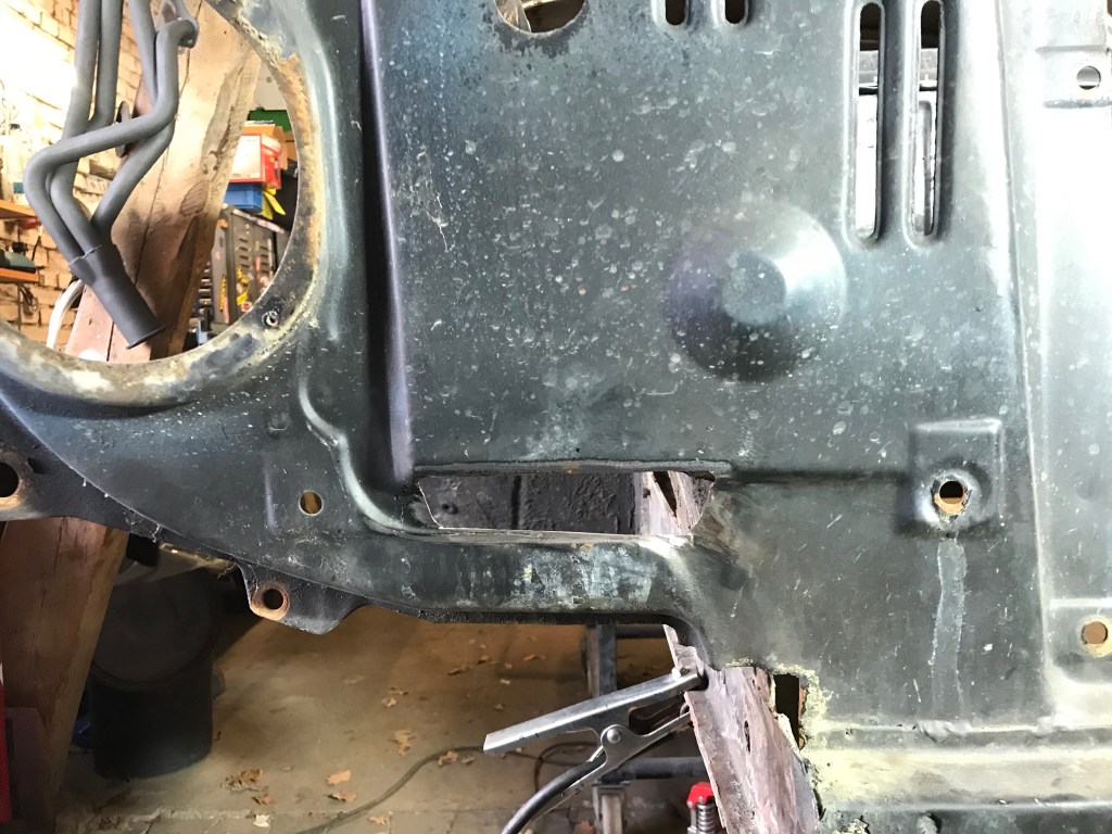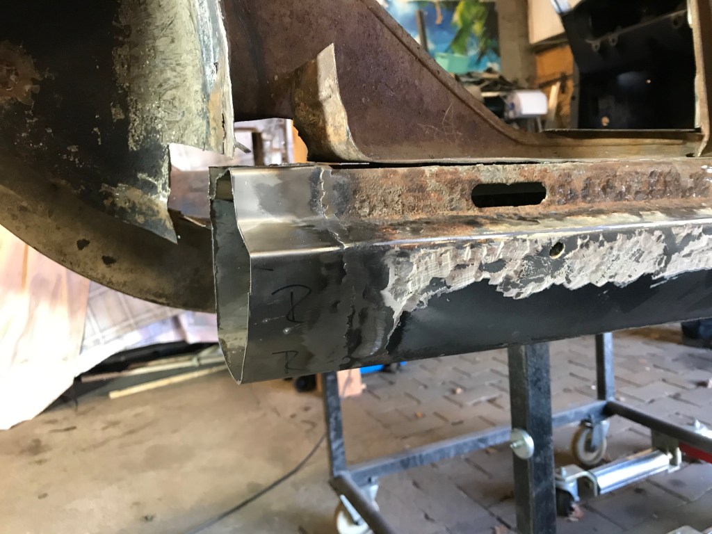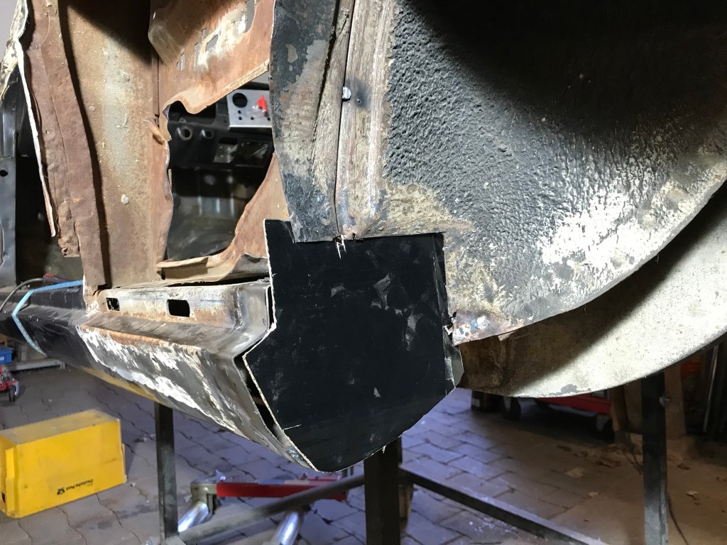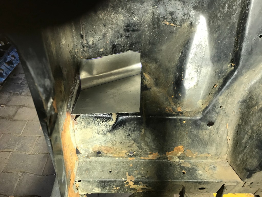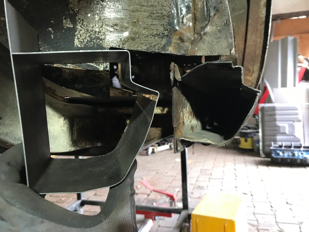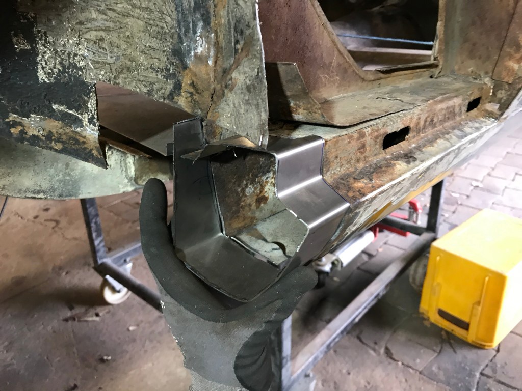 Einschweissen dagegen konnte ich an gleicher Stelle vorne rechts ein Blech in diese Lücke: