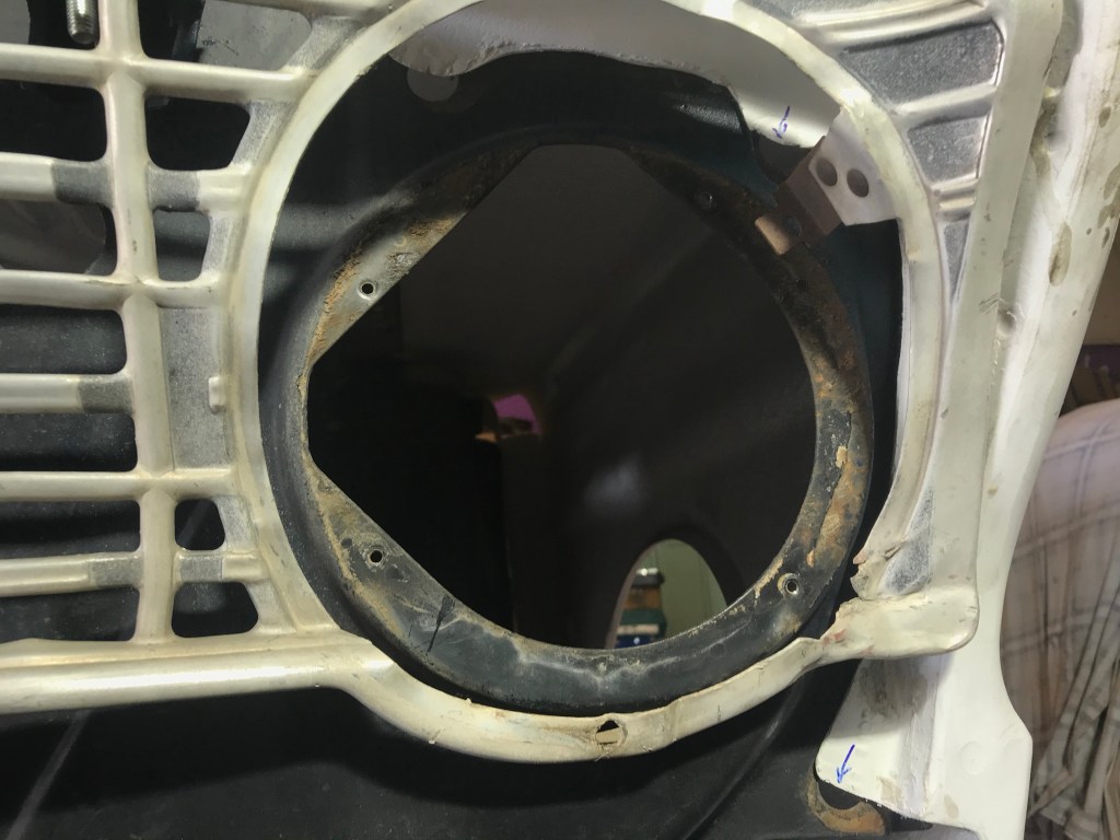Wenn ich mich im letzte blog leicht negativ über die Kunststoffkarosserieteile geäußert habe, so möchte ich dies an dieser Stelle auf das Äußerste widerrufen. Nicht genug damit, dass die Anbindungspunkte der Fender völlig in der Wiese stehen, auch die Türen sind mängelbehaftet in der Art und Weise, dass sie 20 (!!!!) mm zu kurz sind 😠. Aber eines nach dem anderen. Nachdem ich den linken fender an den Befestigungspunkten der A-Säule viermal auflaminiert und in zahllosen Iterationen passend geschliffen habe, liessen sich fender und Motorhaube einigermaßen harmonisch zueinander einbauen. Ein Blick durch die Scheinwerferöffnung offenbart, dass die Passgenauigkeit der fender zumindest konstant (schlecht) ist: