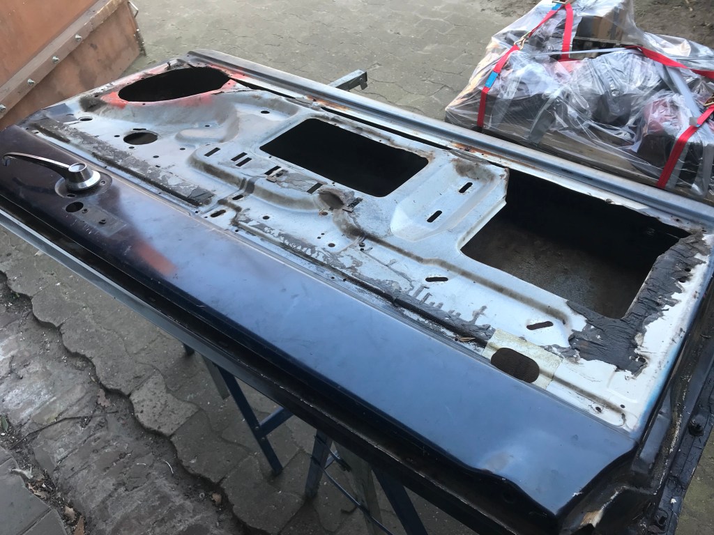 Nach dem Entfernen der Scheiben und der Betätigungselemente ist die Tür übrigens kaum leichter geworden, dafür aber auch nicht durchgerostet. Man muss eben abwägen 🤔.