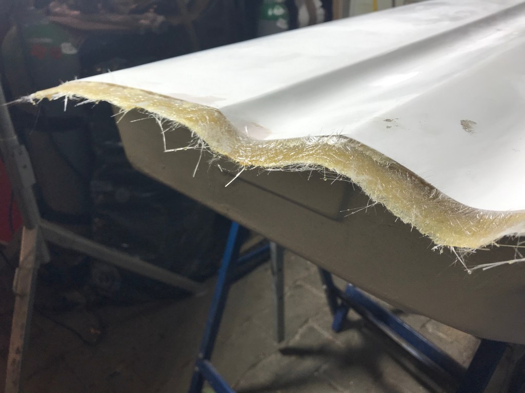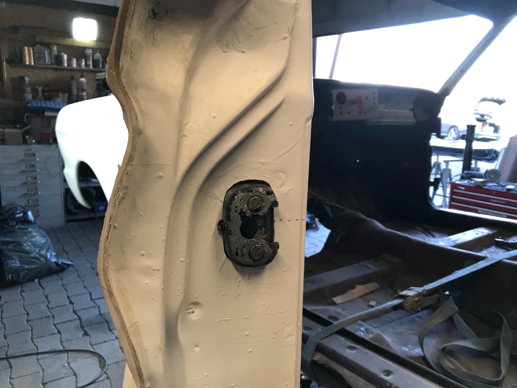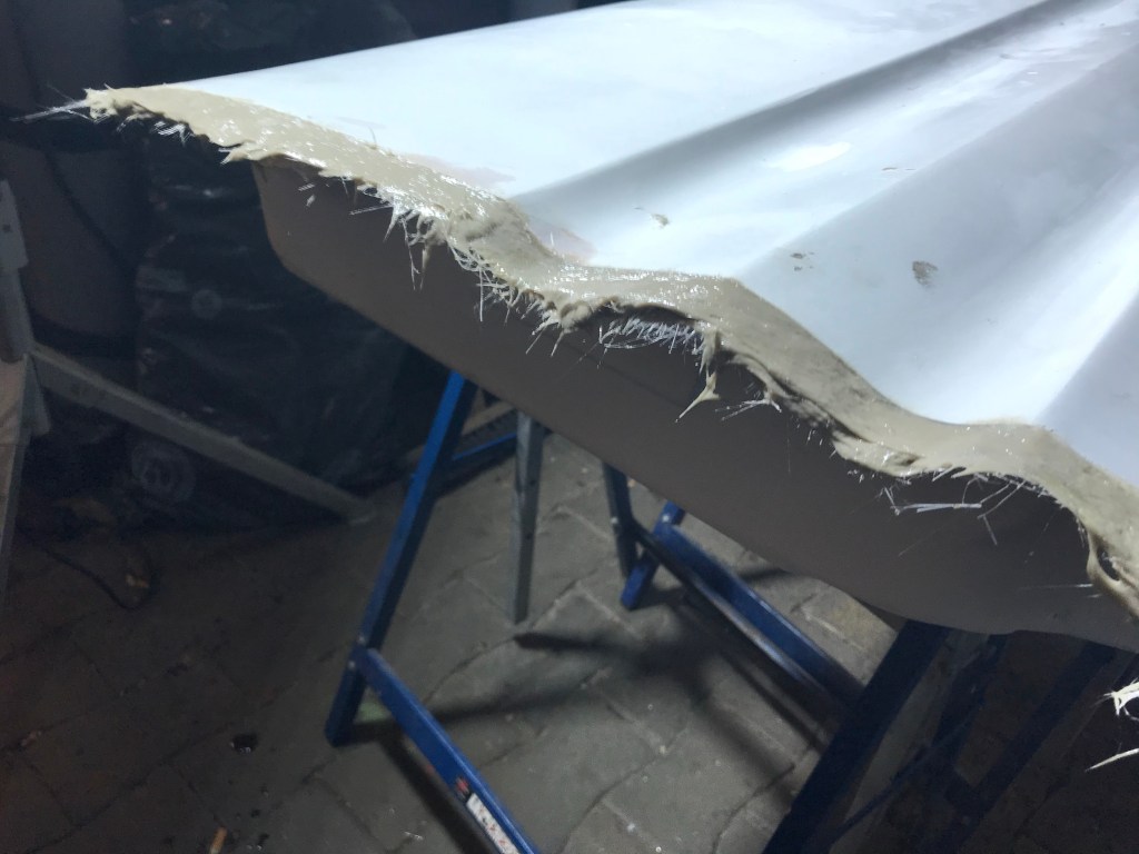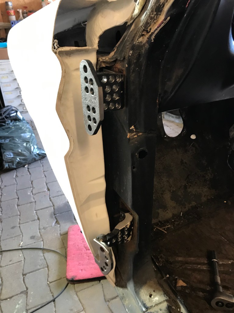 Als alles getrocknet war, habe ich mit der Trennscheibe einen sauberen Schnitt gesetzt – das genaue Einschleifen kann erst erfolgen, wenn die Türen eingebaut sind. Um das zu tun, mussten die Fender montiert …