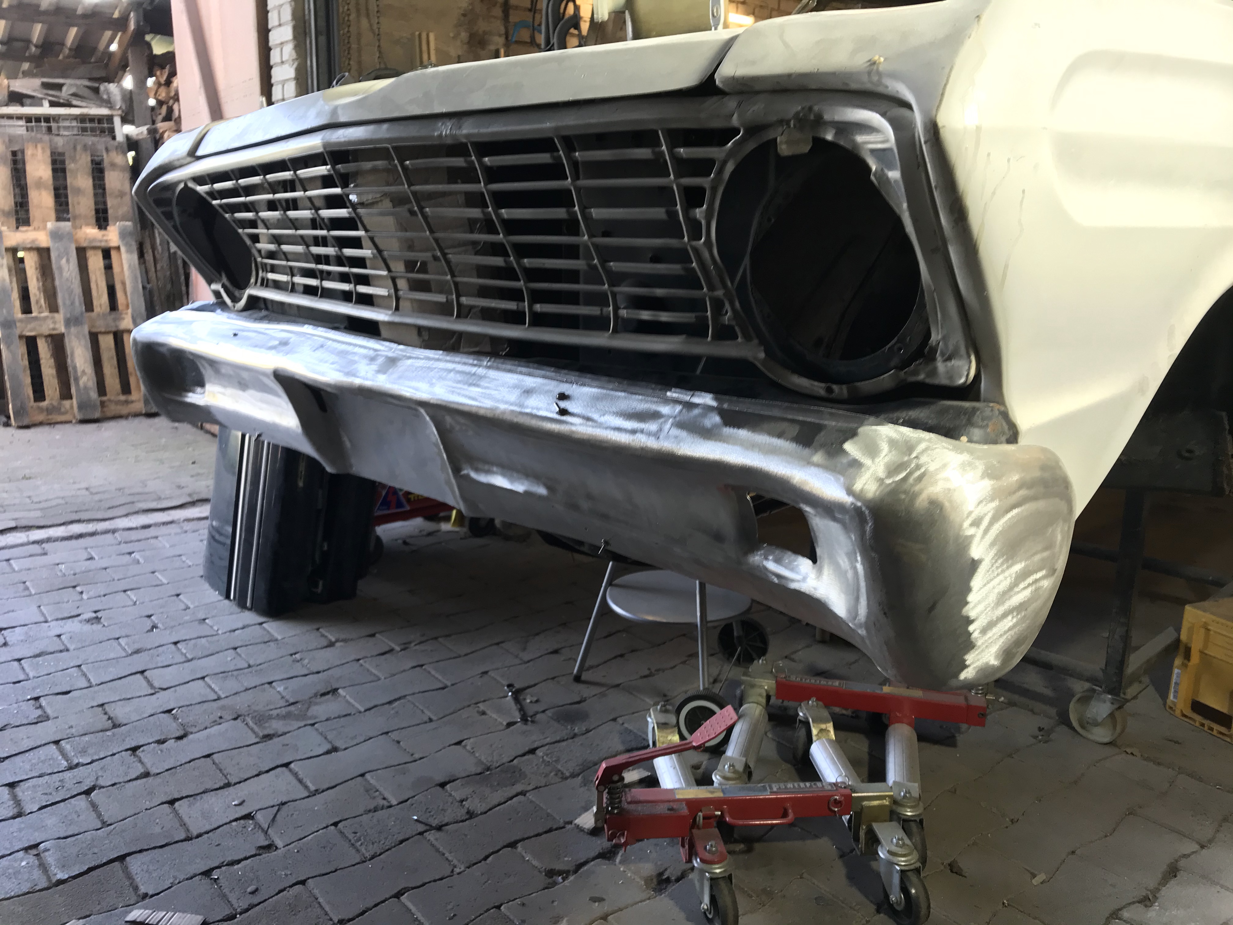 In den U.S.A. habe ich die Fahrwerksteile nach langem Hin und Her nun doch bestellt, samt Frontscheibe. Bevor die Lieferung eintrudelt, hoffe ich, die Grundierung des Autos samt vorgelagertem Sandstrahlen über die Bühne gebracht zu haben. Schliesslich sind herumliegende Autoteile nur sinnlos gebundenes Kapital, und das braucht in der heutigen Zeit schliesslich niemand.