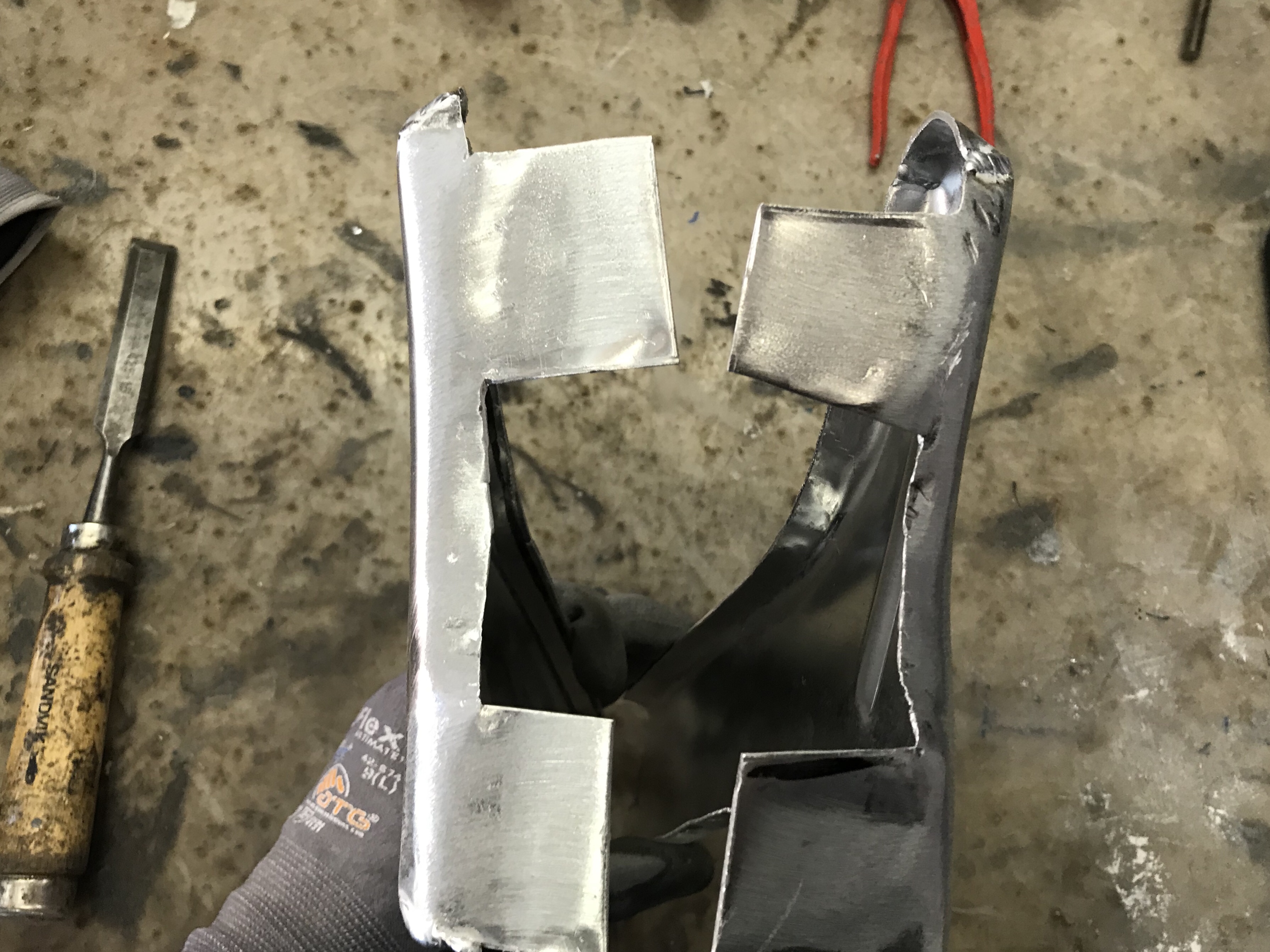 Beide Versionen habe ich mit der Blechschere bearbeitet, so dass nun beide Seiten in etwa spiegebildlich wirken (es aber nicht wirklich sind 🤫).