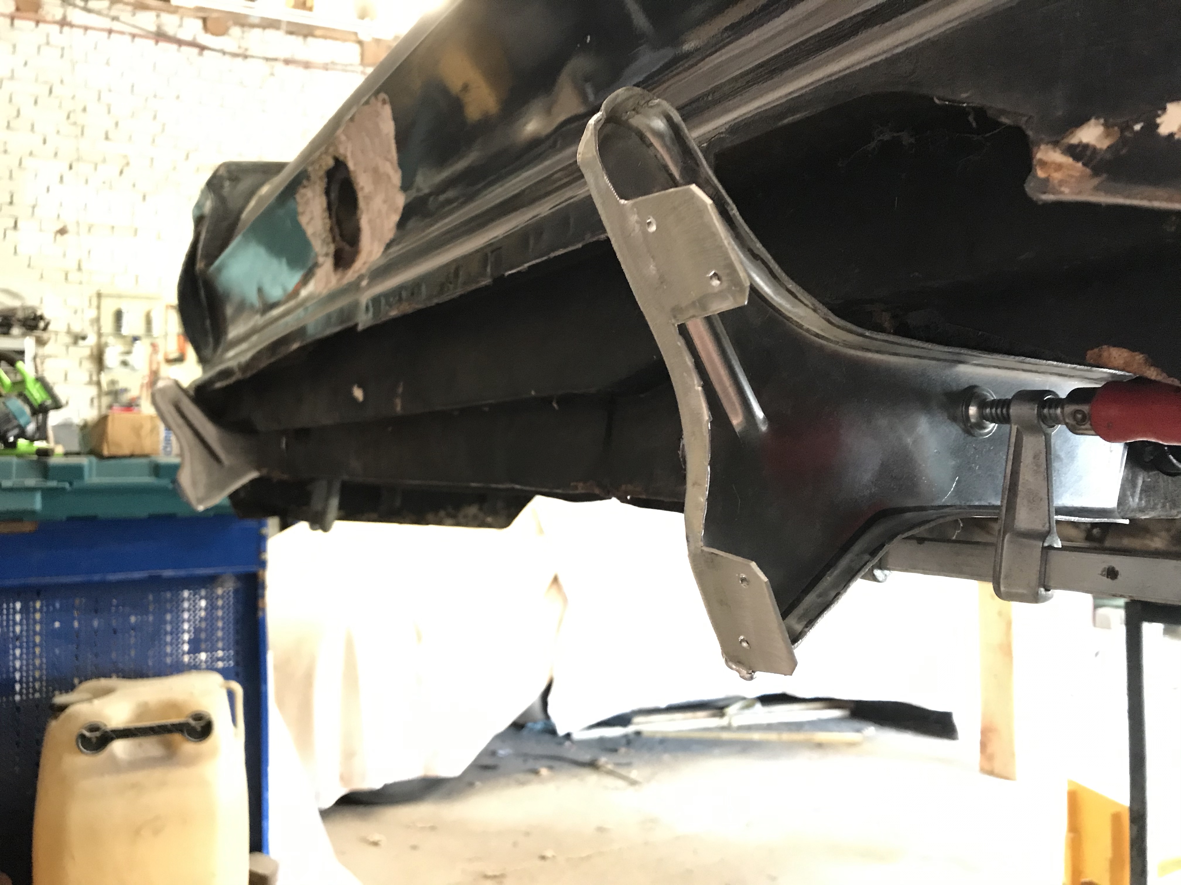 Hinweisen möchte ich an dieser Stelle auf die hinteren Stoßstangenhalter, wiederum aus Leichtbaualuminium ausgeführt. Die Stücke sind nicht nur leicht, sondern auch echte Unikate insofern, als dass selbst linkes und rechtes Teil nur begrenzt ähnlich sind: