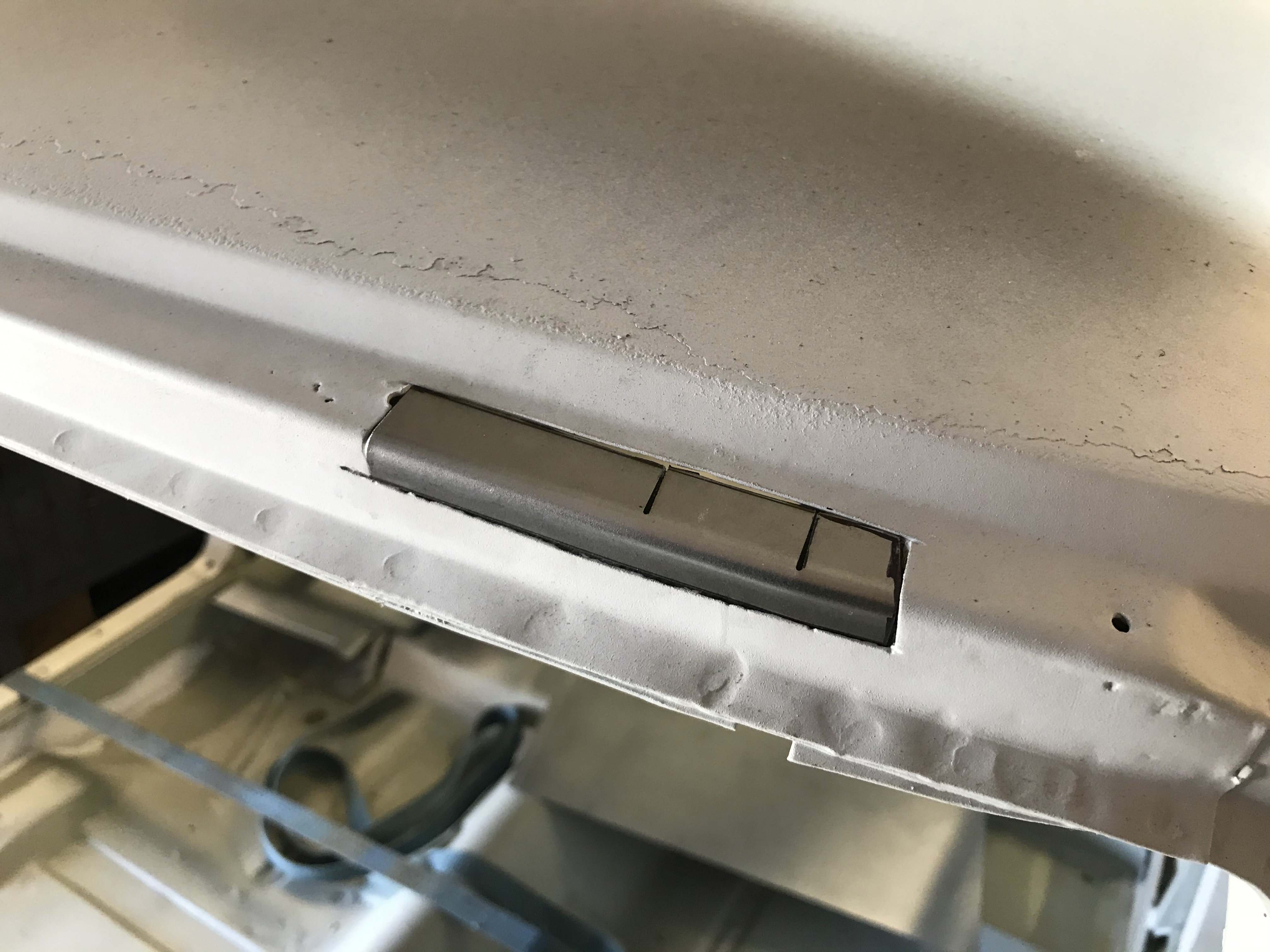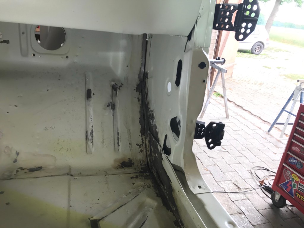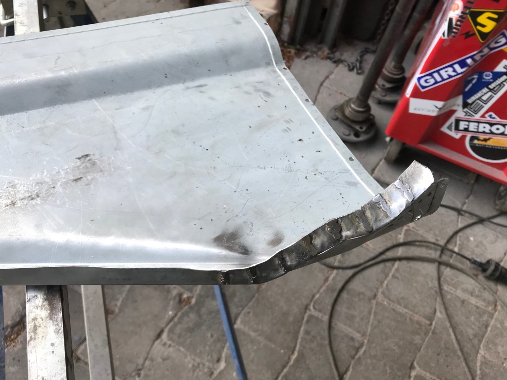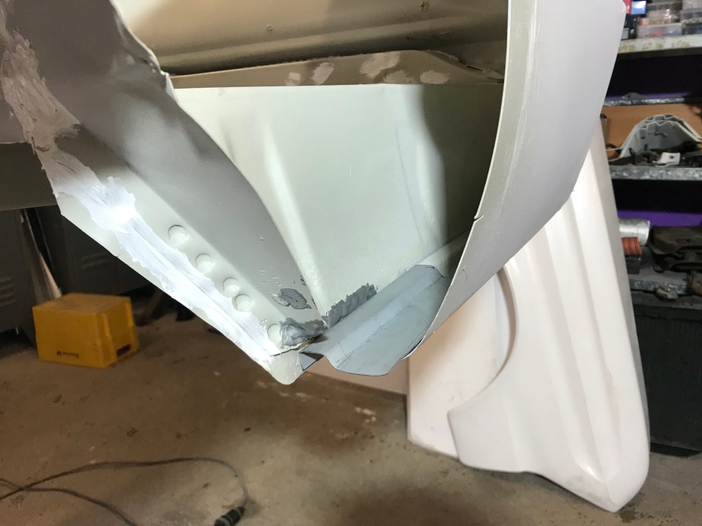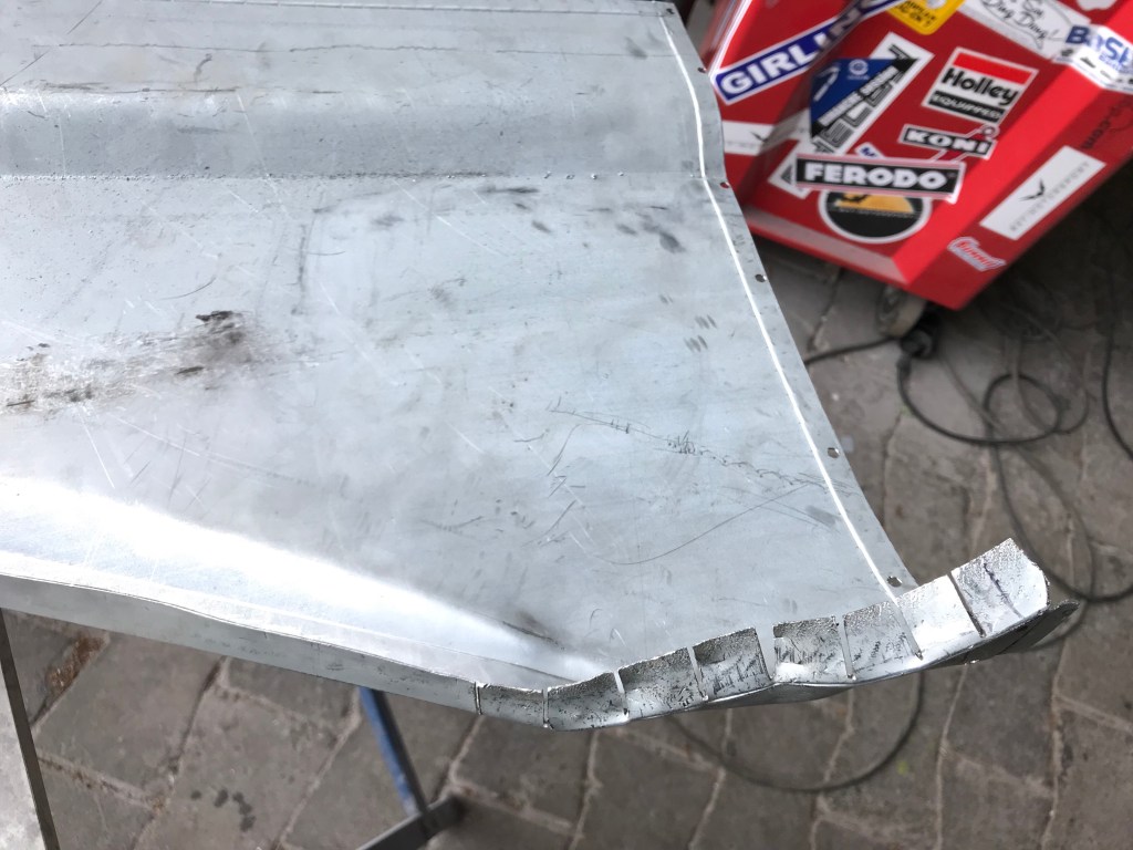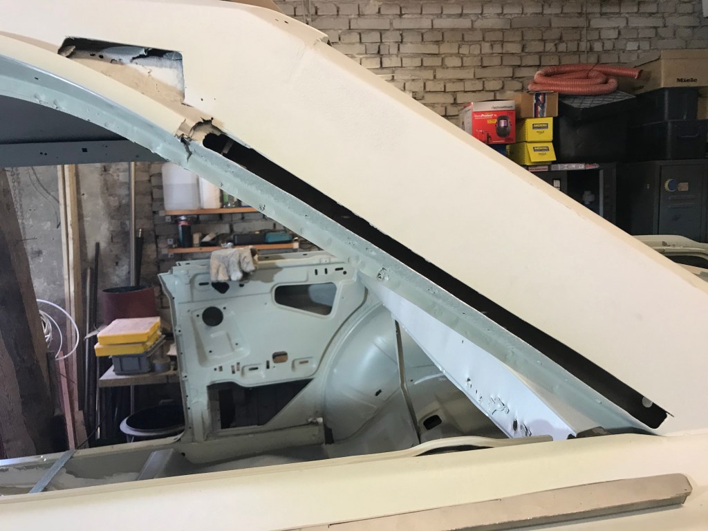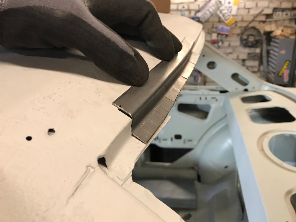 Es gab dann noch weitere Überlappungen, die mit Dichtmasse behandelt werden mussten, was den Vorteil mit sich brachte, dass ich die Blecharbeiten an der Karosserie ein Stück nach hinten schieben konnte.