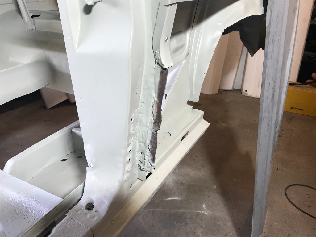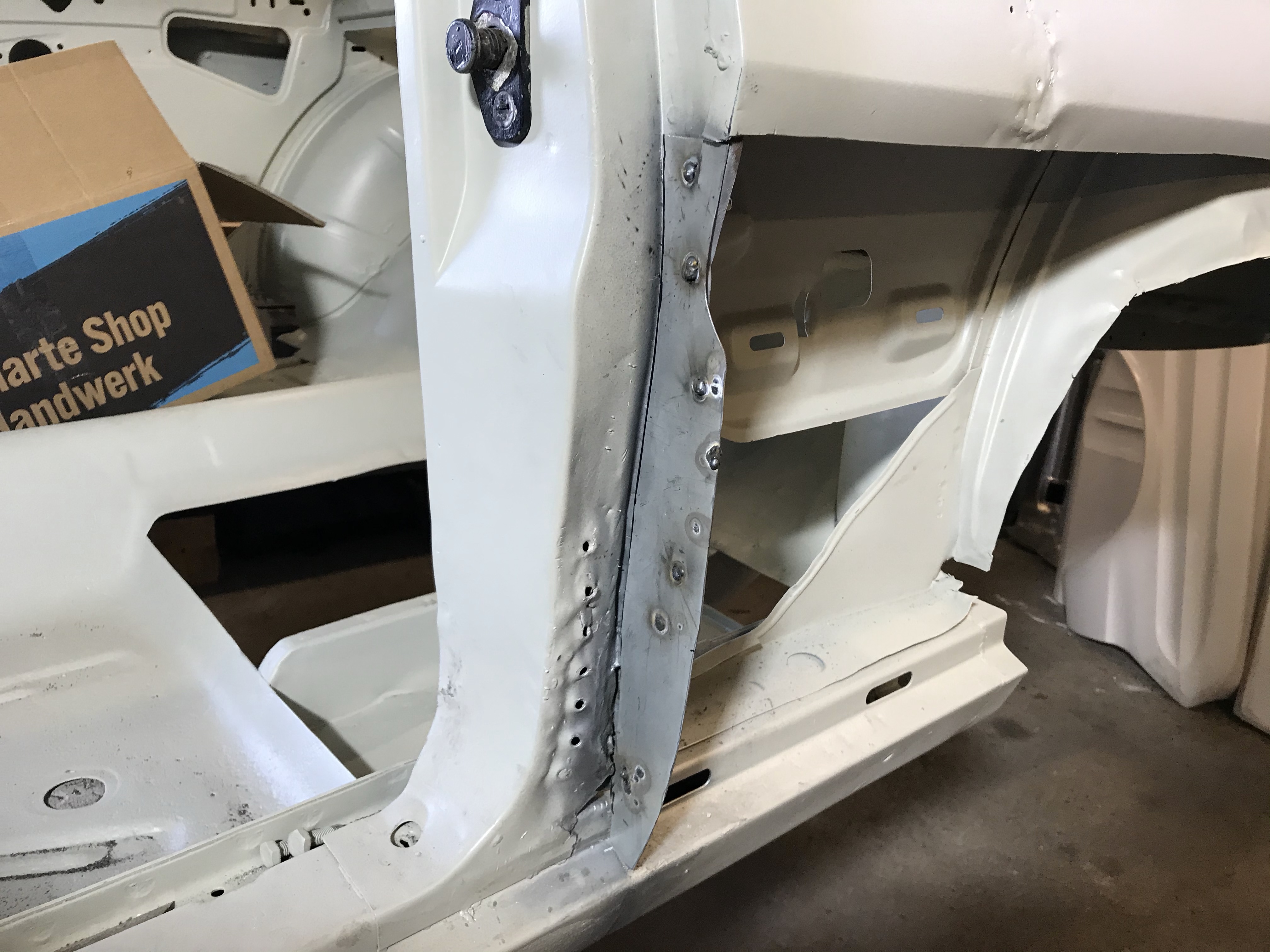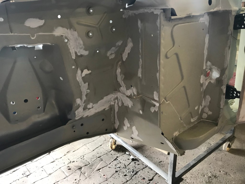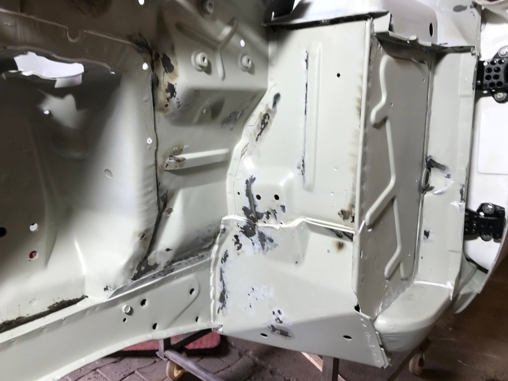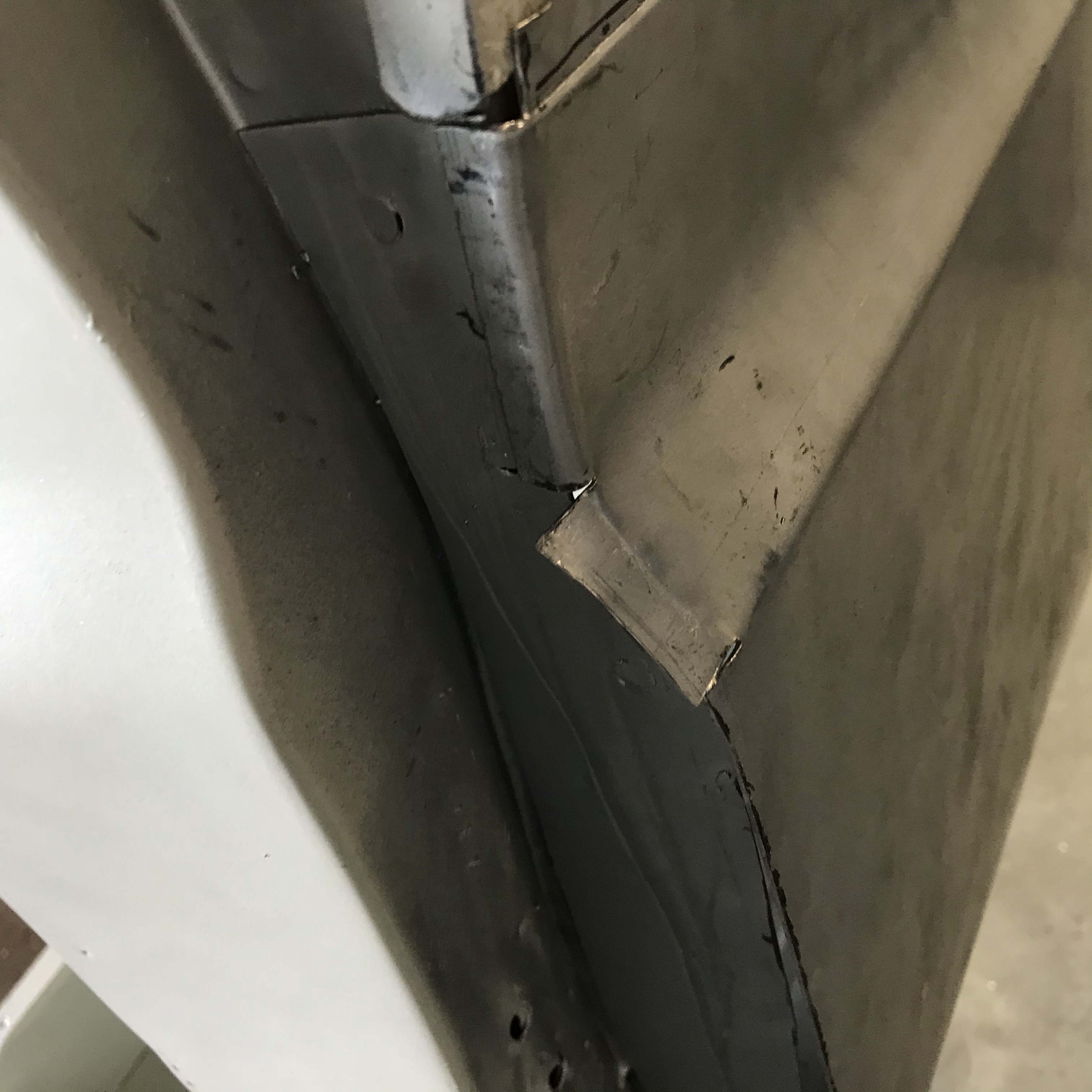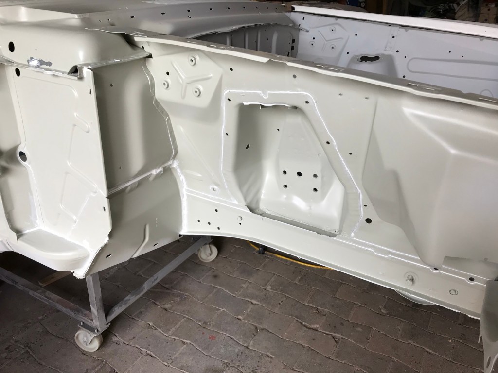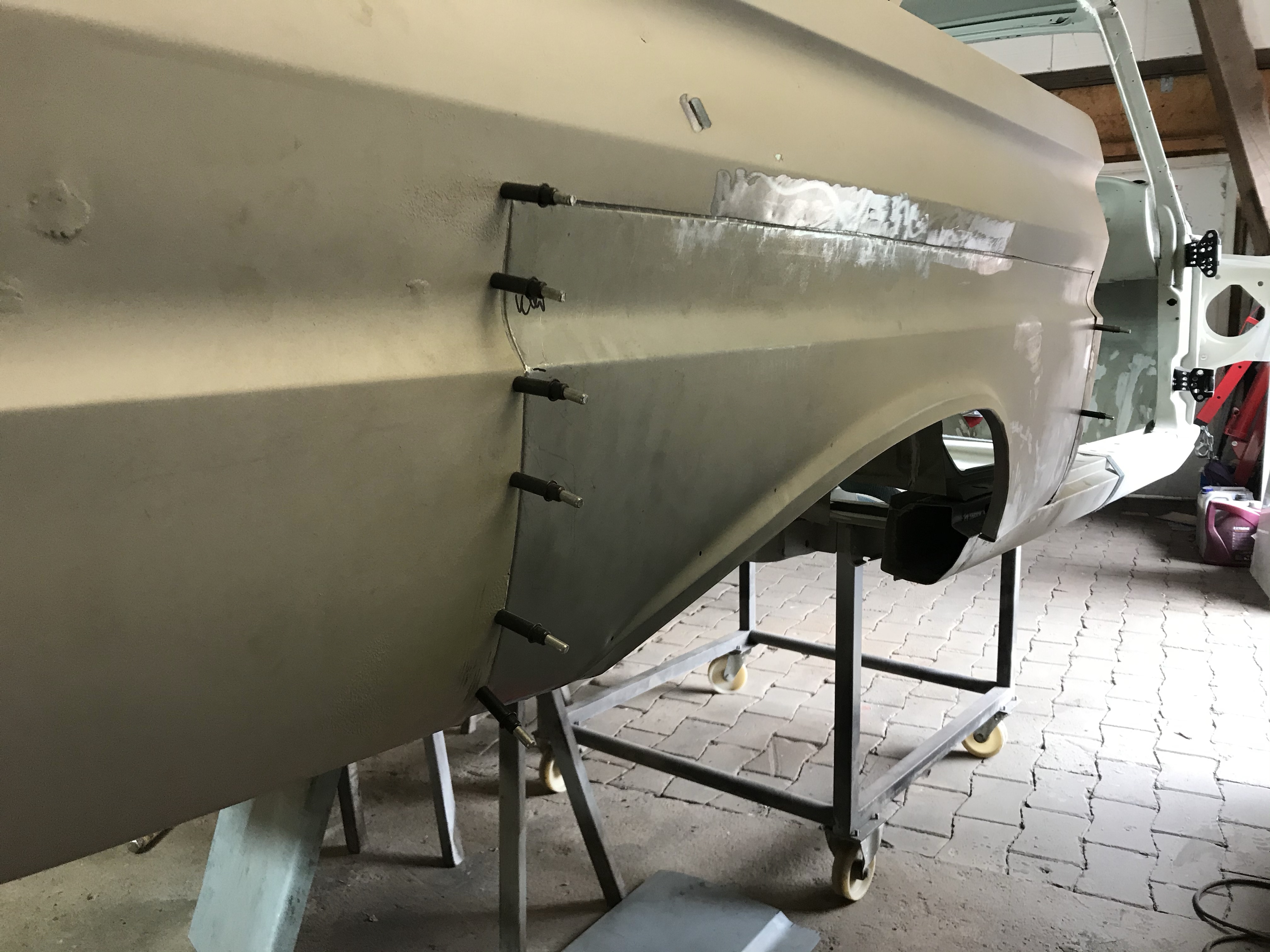 Es gab dann noch weitere Überlappungen, die mit Dichtmasse behandelt werden mussten, was den Vorteil mit sich brachte, dass ich die Blecharbeiten an der Karosserie ein Stück nach hinten schieben konnte.