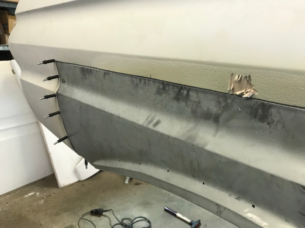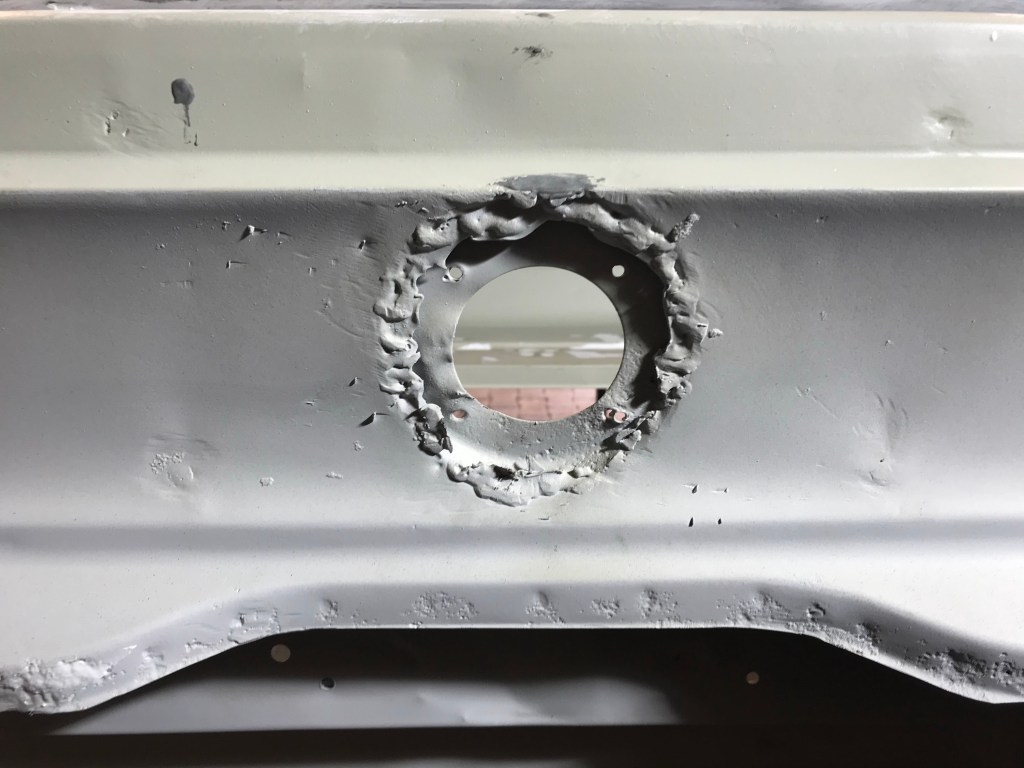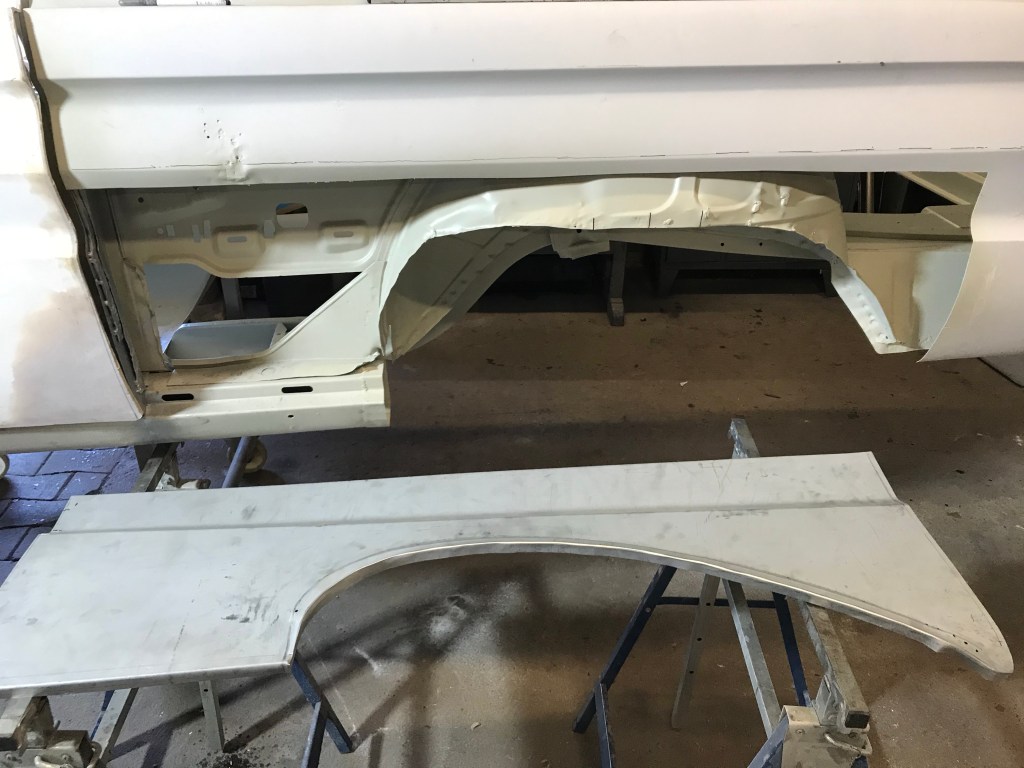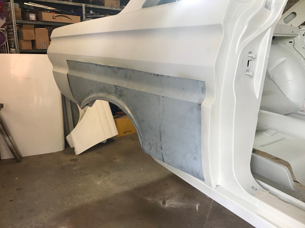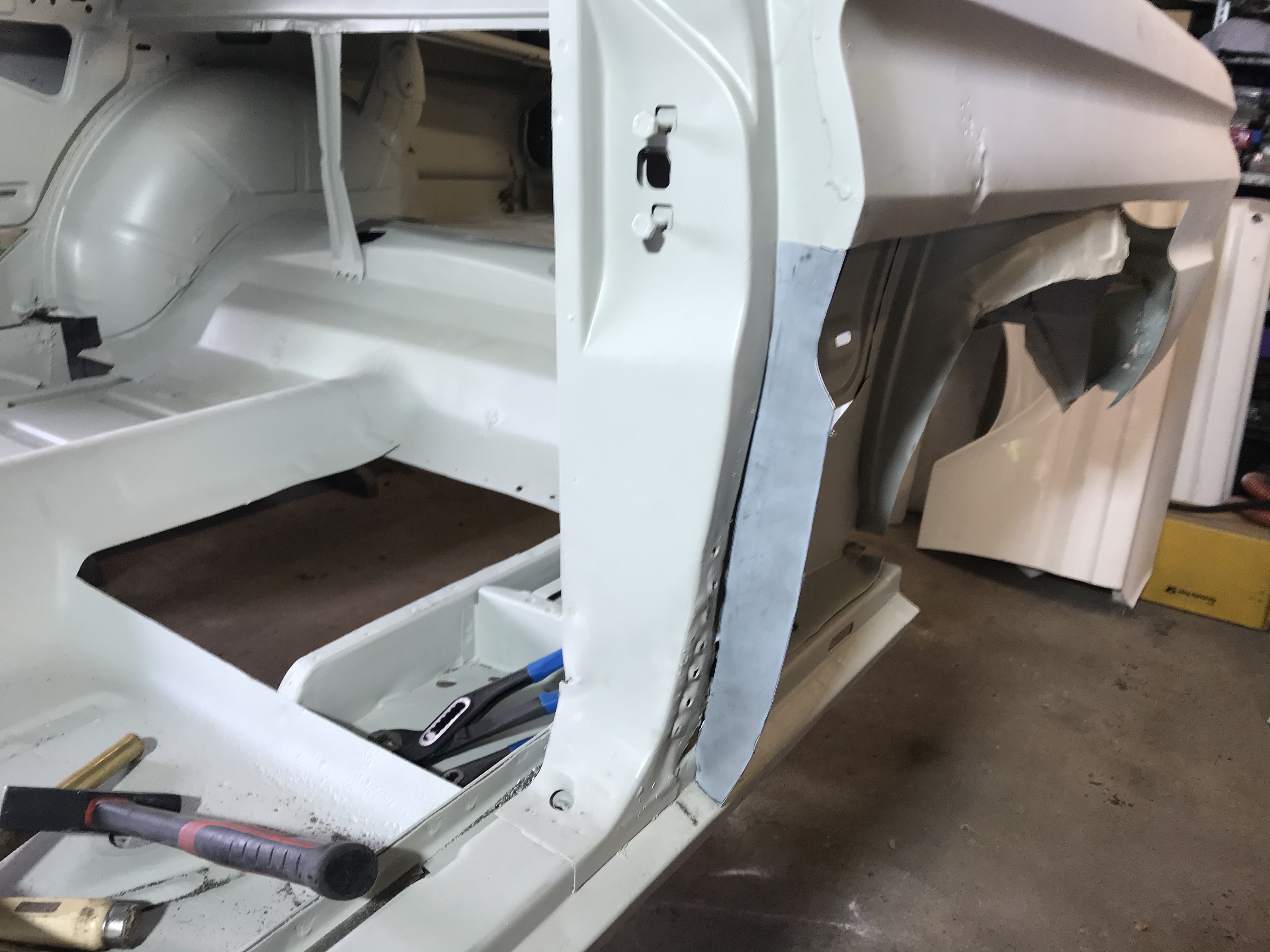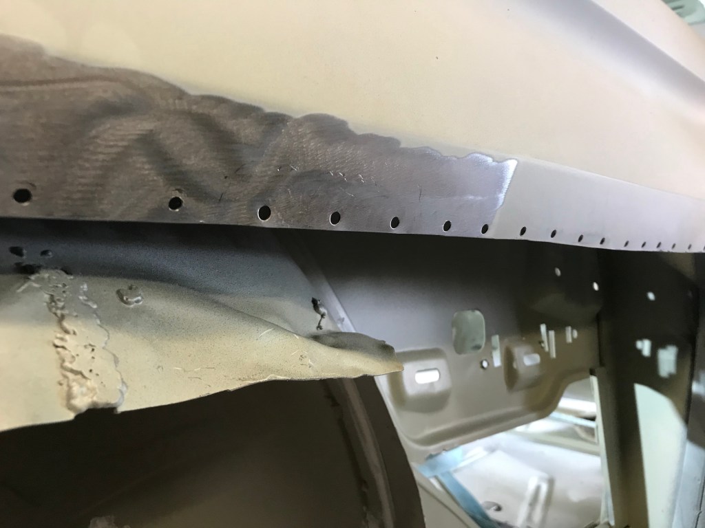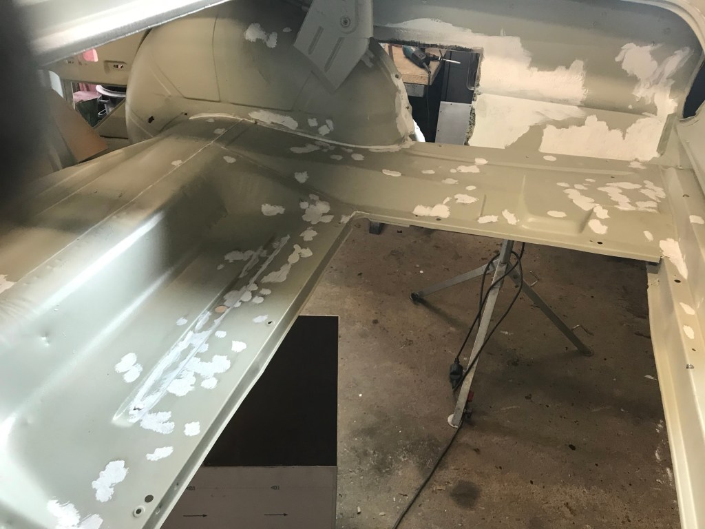 Es gab dann noch weitere Überlappungen, die mit Dichtmasse behandelt werden mussten, was den Vorteil mit sich brachte, dass ich die Blecharbeiten an der Karosserie ein Stück nach hinten schieben konnte.
