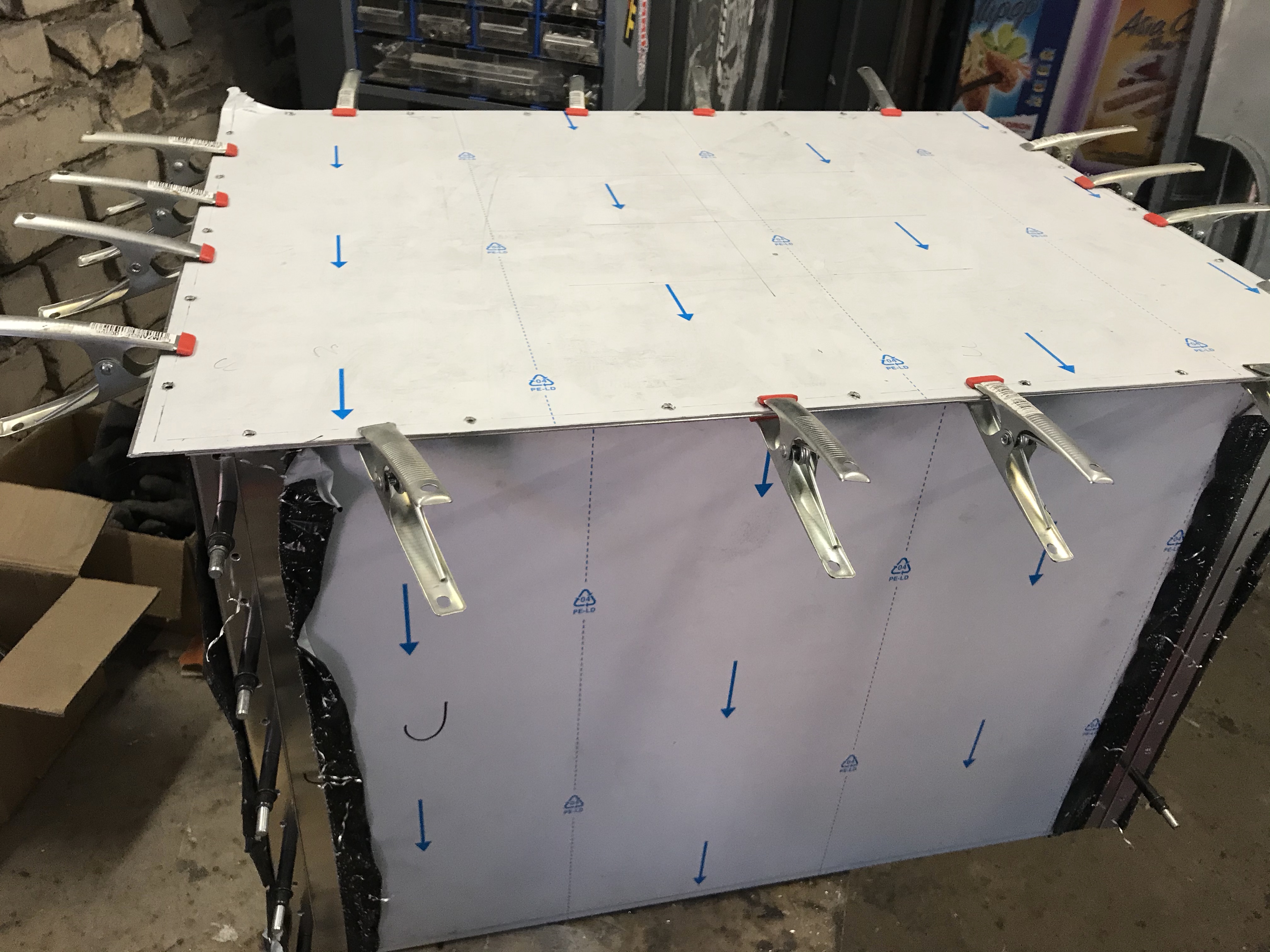 Ich hätte nicht gedacht, dass die Clecos noch so oft zum Einsatz kommen würden. Hier dann das Gehäuse mit Deckel: