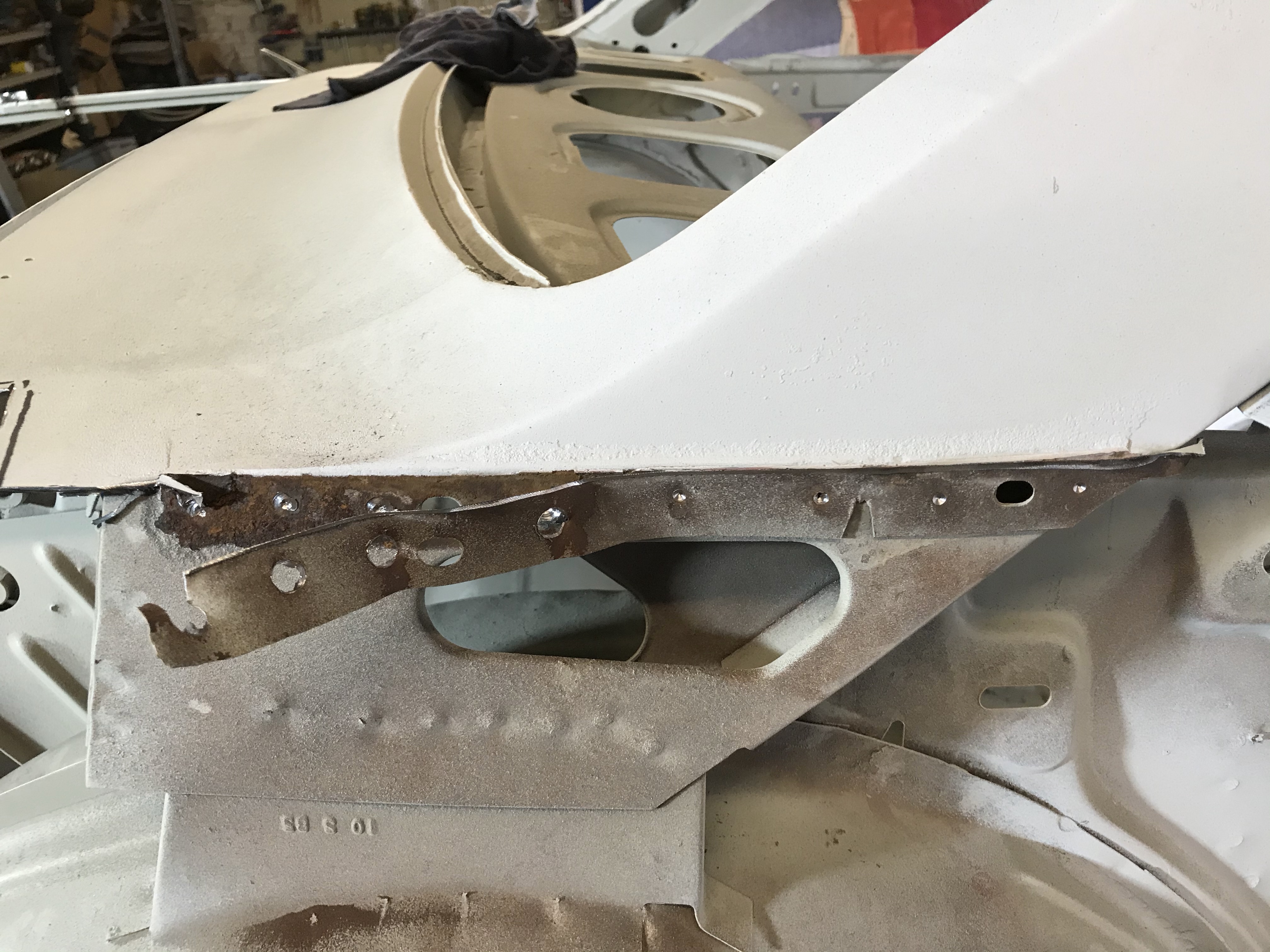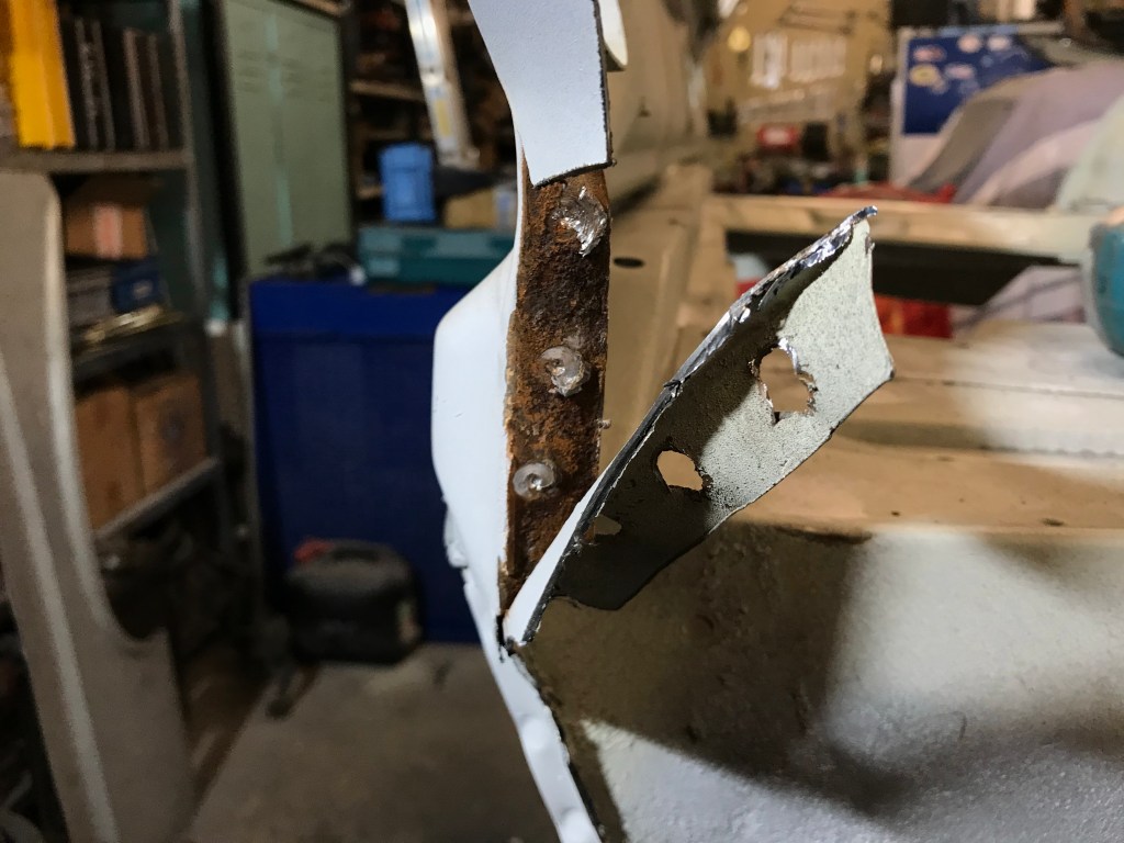 Flex, Schweisspunktbohrer, Hammer und Stecheisen waren heute die beherrschenden Arbeitsmittel, da weitere Aufräumarbeiten am hinteren rechten Blech (einfacher: RH rear quarter) anstanden.