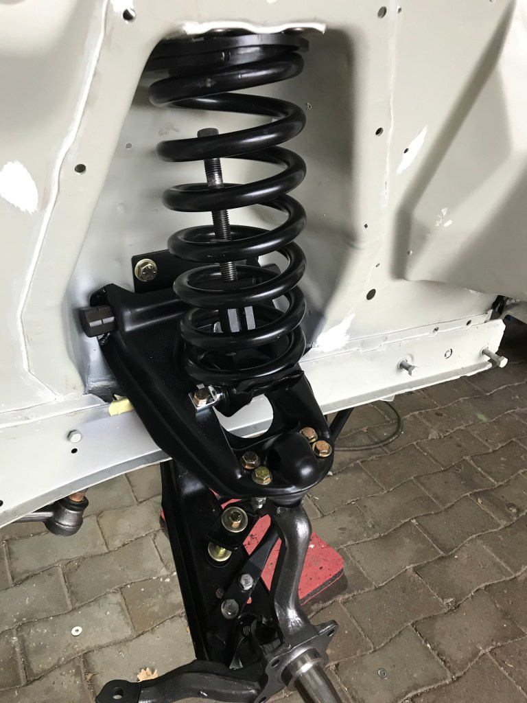 Die linke Feder vorn konnte ich nicht montieren, da die aktuellen und infrage kommenden Spanner mit der Karosserie kollidierten (eventuell muss ich doch noch investieren).
