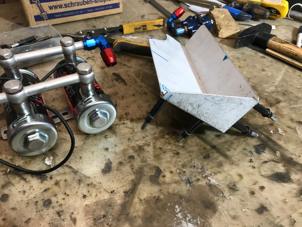 Die Adapter von 3/8 NPT auf Dash6 sind leider noch auf dem Weg, werden daher erst später angebracht werden können. Vorfreude …