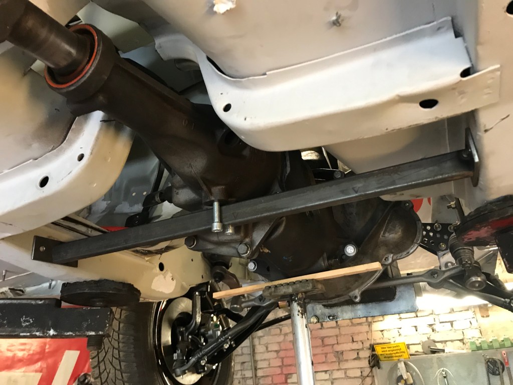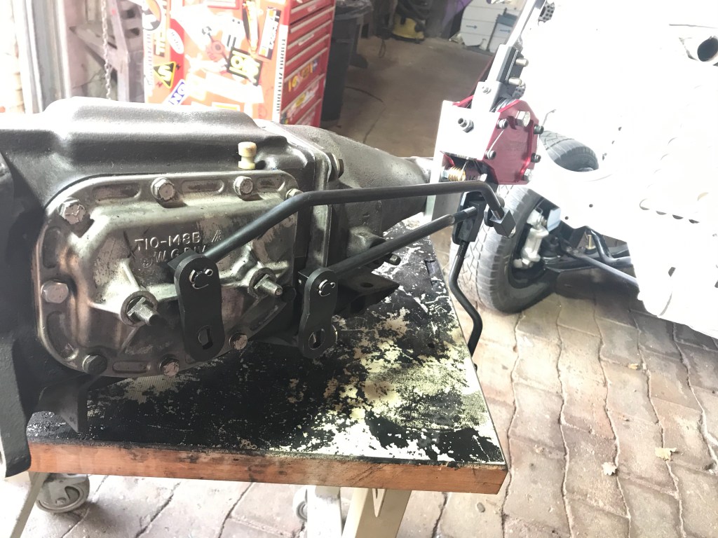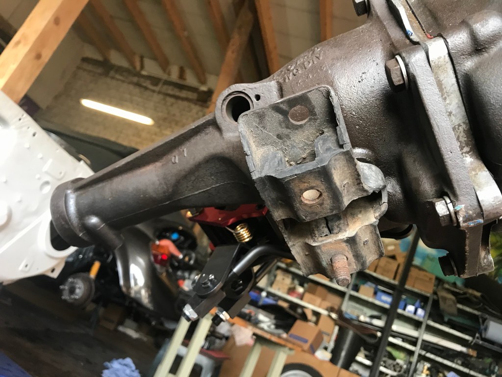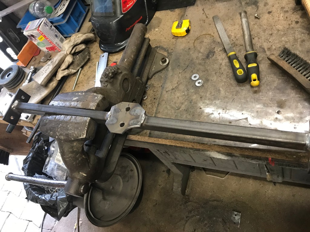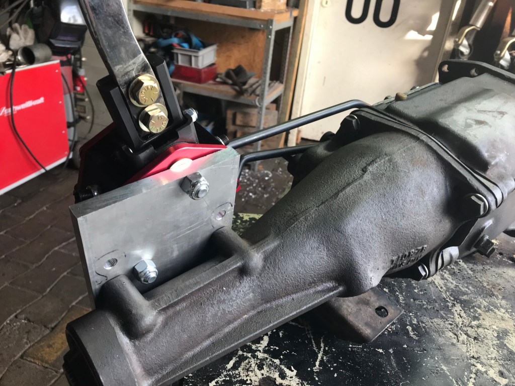 … und das Getriebe mit gleichnamiger Abstützung abgestützt (!), da der Originalgetriebehalter entfernt werden musste, und ein neuer zu erstellen war, hier der erste Entwurf: