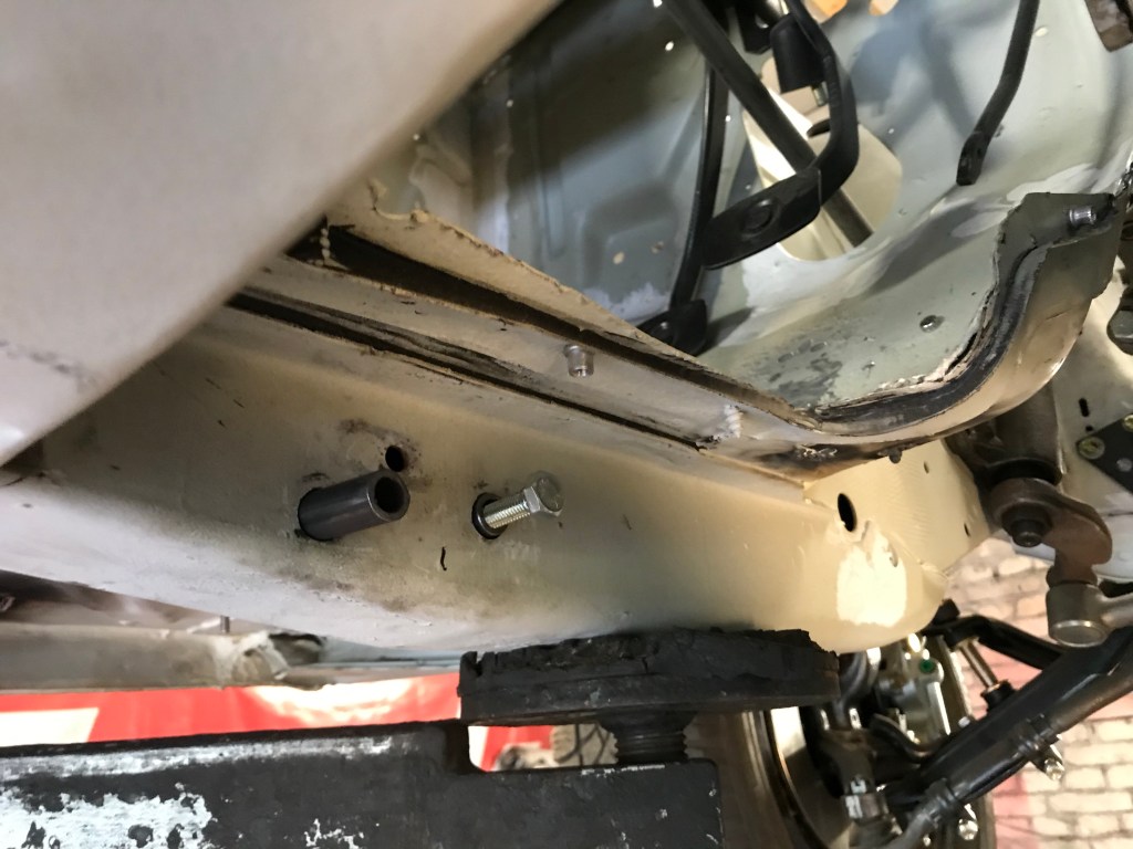 Die Verschraubung durch den Längsträger benötigte innenliegende Hülsen:
