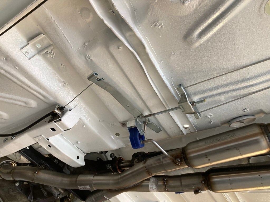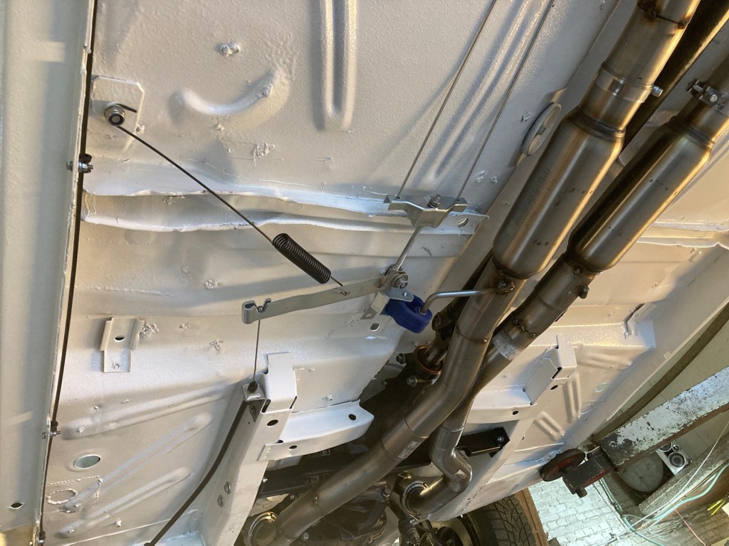 Aber nun zurück zur aktuellen Baustelle am Falcon. Der getroffene Ansatz, die Handbremse direkt und ohne Hebelarm bedienen zu können, erwies sich als irrig, als ich versuche, durch Betätigen des Handbremshebels irgendeine Reaktion der Hinterradbremsen hervorzurufen. Es tat sich genau nichts. Einzusehen war, dass die Ingenieure der sechziger Jahre ihr Handwerk verstanden, und die Hebelgesetze beherrschten. Unter Verwendung des Originalhebels, leicht modifiziert am Falcon montiert, ist die Handbremse im Rahmen ihrer Möglichkeiten nutzbar: