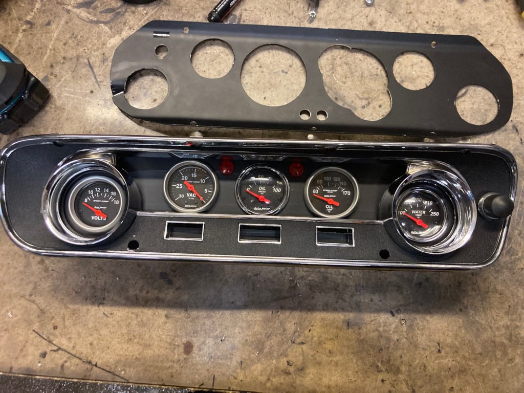 Sogar ein Platz für die Kontrolleuchten (Öldruck, Bremsdruckverteilung) hat sich gefunden, allerdings nicht für den Drehzahlmesser, doch dazu mehr in einer Minute. Nicht vorenthalten möchte ich nämlich eine Impression aus den Montagephase durch B: