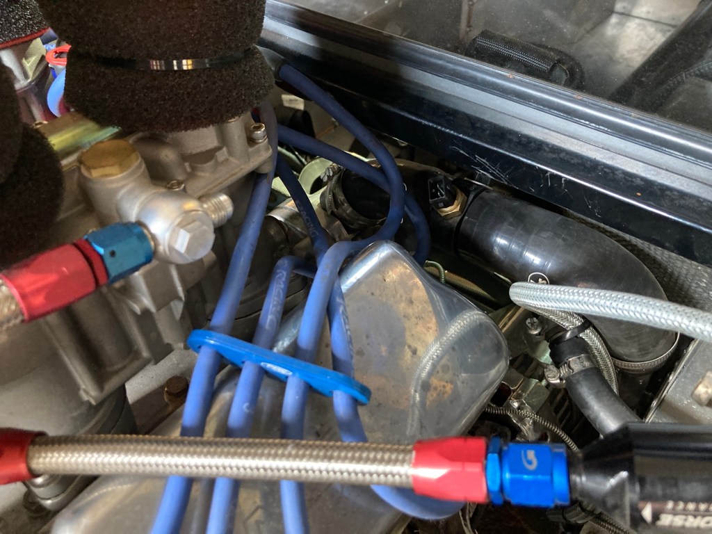 Den Anschluss für die bleeding line des Wasserkühlers habe ich ebenfalls zwischen Motor und Ausgleichsbehälter eingebaut: