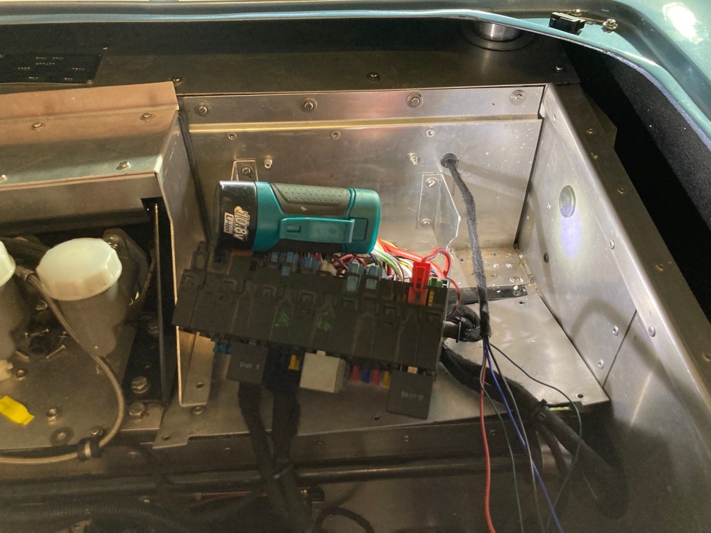 Der mitgelieferte Kabelbaum war – unter Anleitung – noch vom Ausgleichsbehälter im Motorraum über den Multistecker im Cockpit zur Batterie und zum Sicherungskasten vorne im Auto zu verlegen: