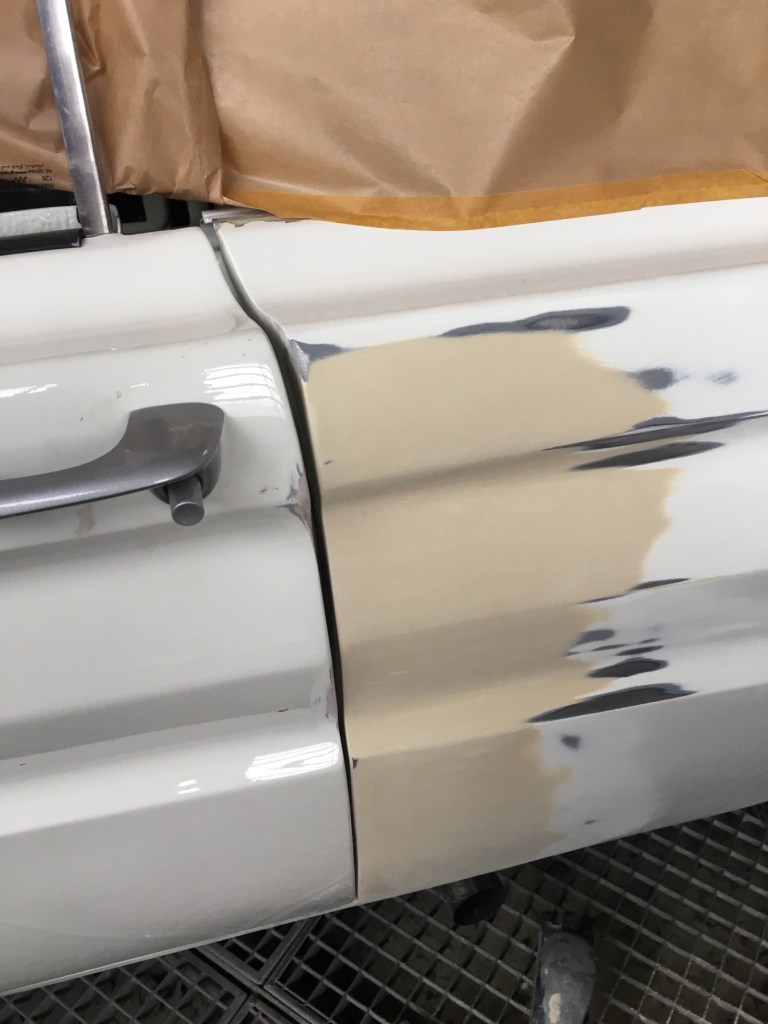 Mein eigenes Zutun in Sachen Unglücksbehebung am Falcon bestand, nach dem Laminieren der Tür auf der Innenseite, im Versuch der Wiederherstellung einer Türtopographie auf der Aussenseite, mittels Faserspachtel, dem Wertvollen. Aus naheliegenden Gründe verzichte ich auf jegliches Bildmaterial in diesem Zusammenhang.
