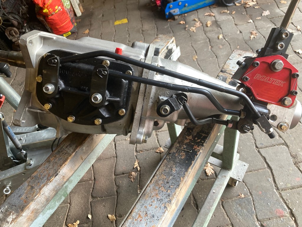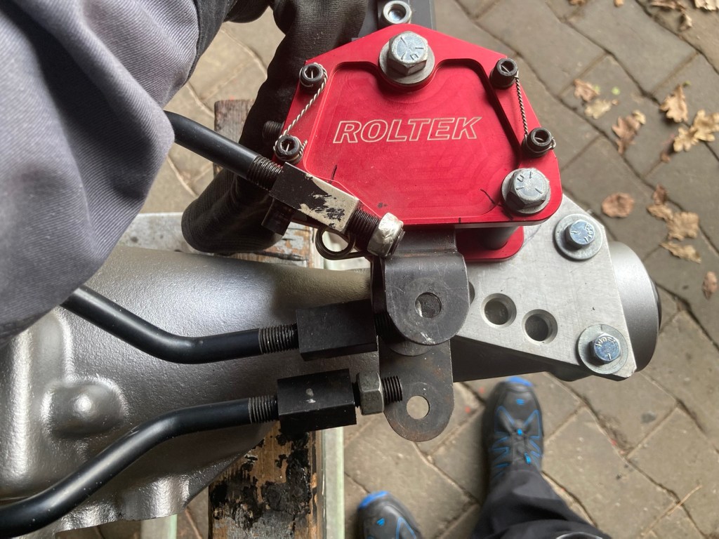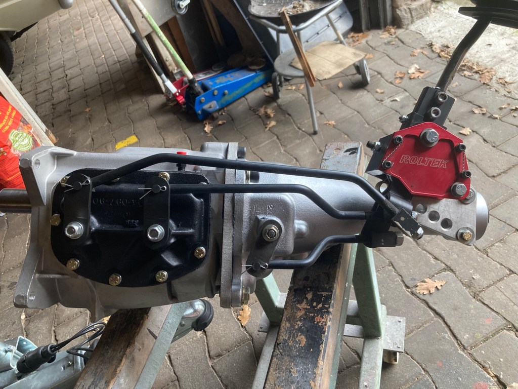 Eines nach dem Anderen: es begann damit, dass J erklärte, dass die Verbindungsstücke zwischen Schaltgestänge und Schaltwelle auf keinen Fall unter einem anderen Winkel als dem Rechten stehen dürften, wegen der Performance. Ein wichtiges Wort, also habe ich diesen Rat gleich mal umgesetzt, und die Verbindungsstücke im Vergleich zum Vorgängergetriebe tatsächlich nach oben zeigend verbaut.
