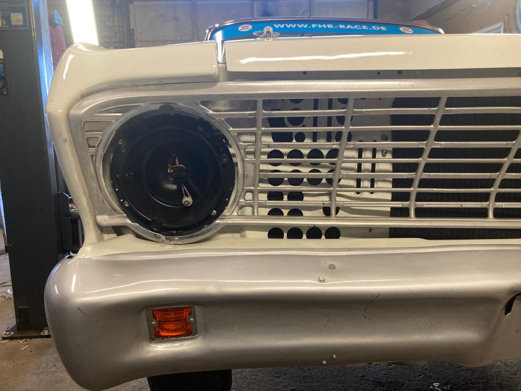 Der durch Steinschlag beschädigte Scheinwerfer …
