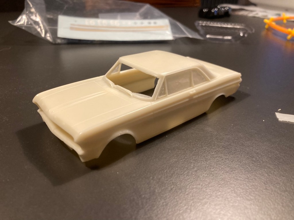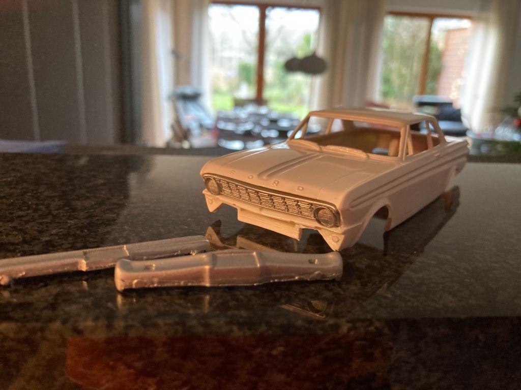 Die Farbe aller Kunststoffteile war anfangs ähnlich Eierschale, und nach dem Lackieren ist die Karosserie nun standesgemäß weiß, Grill und Fliegenfänger sind silberfarben: