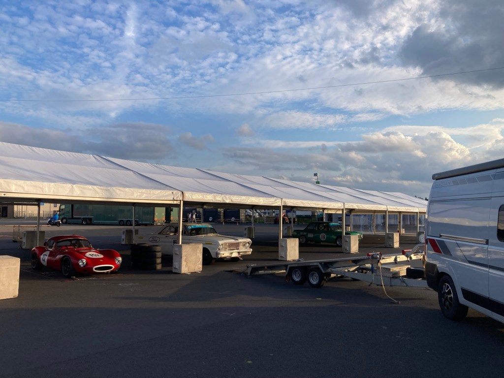 Meine Anreise zum Nürburgring verlief ruhig, bei bestem Wetter konnte ich das noch fast leere FHR-Zelt entspannt beziehen. Die Ginetta aus Dänemark war schon vor mir da, wie auch in den Rennen, interessanterweise: