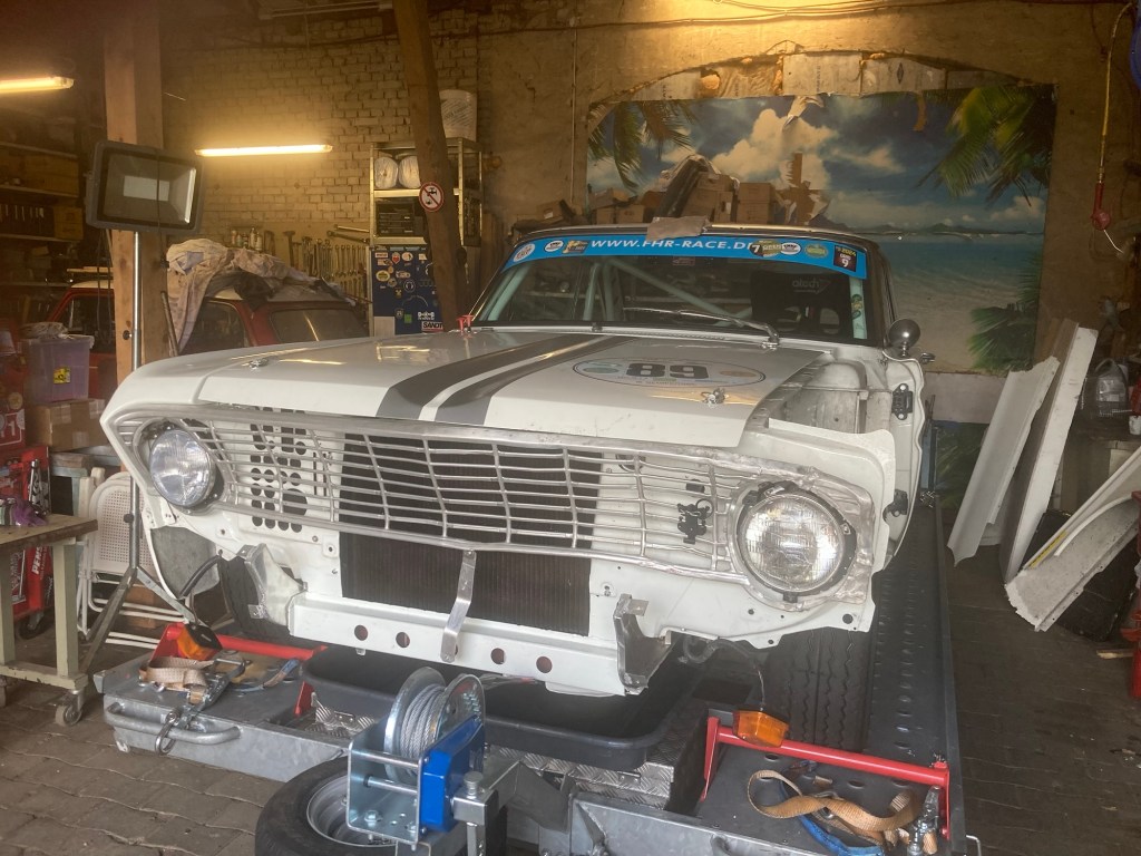 Schließlich und endlich stand der Transport von fender links, Stoßstange und Stosstangenquerträger (?) zu R zum Lackieren auf dem Programm: