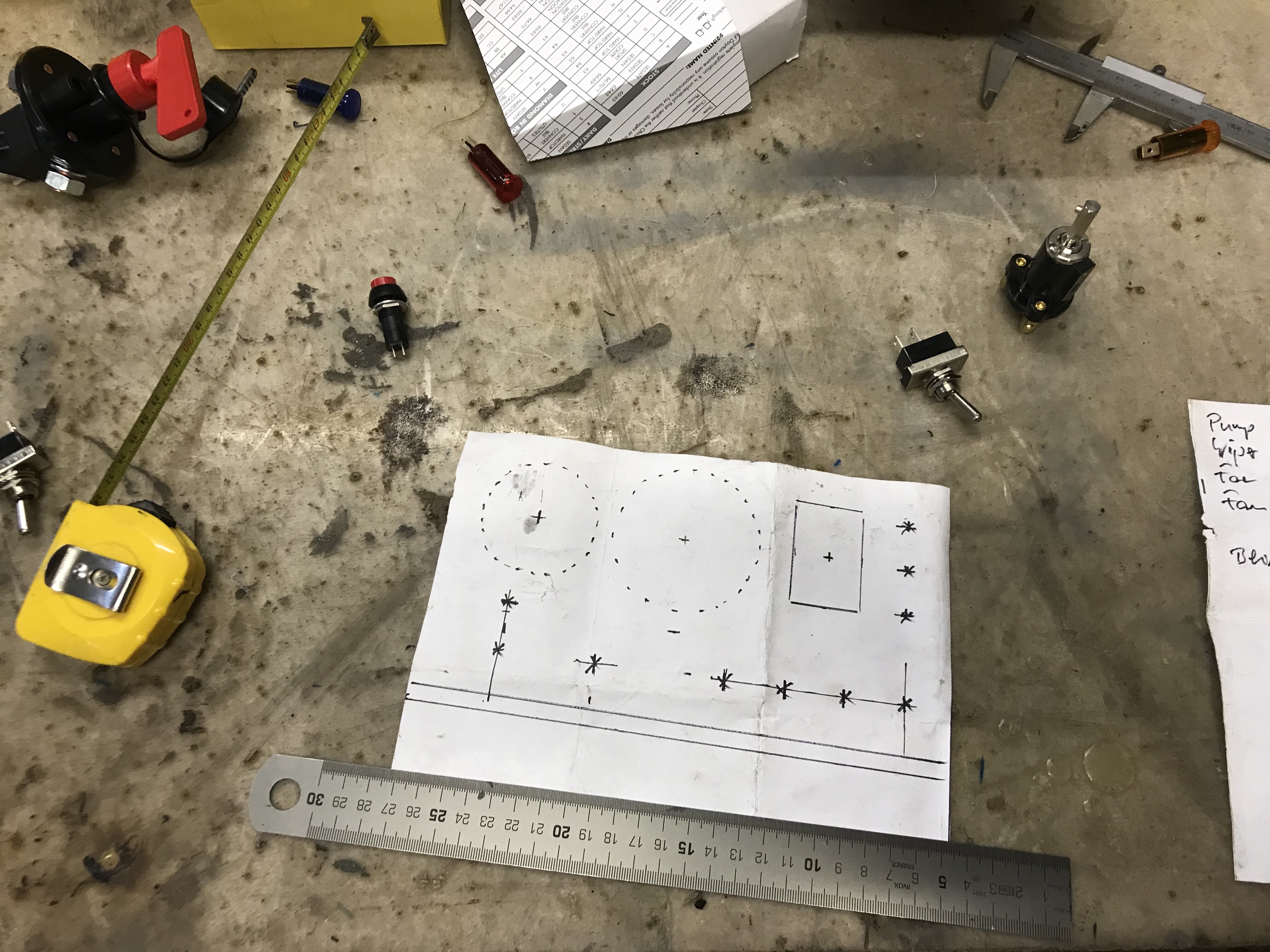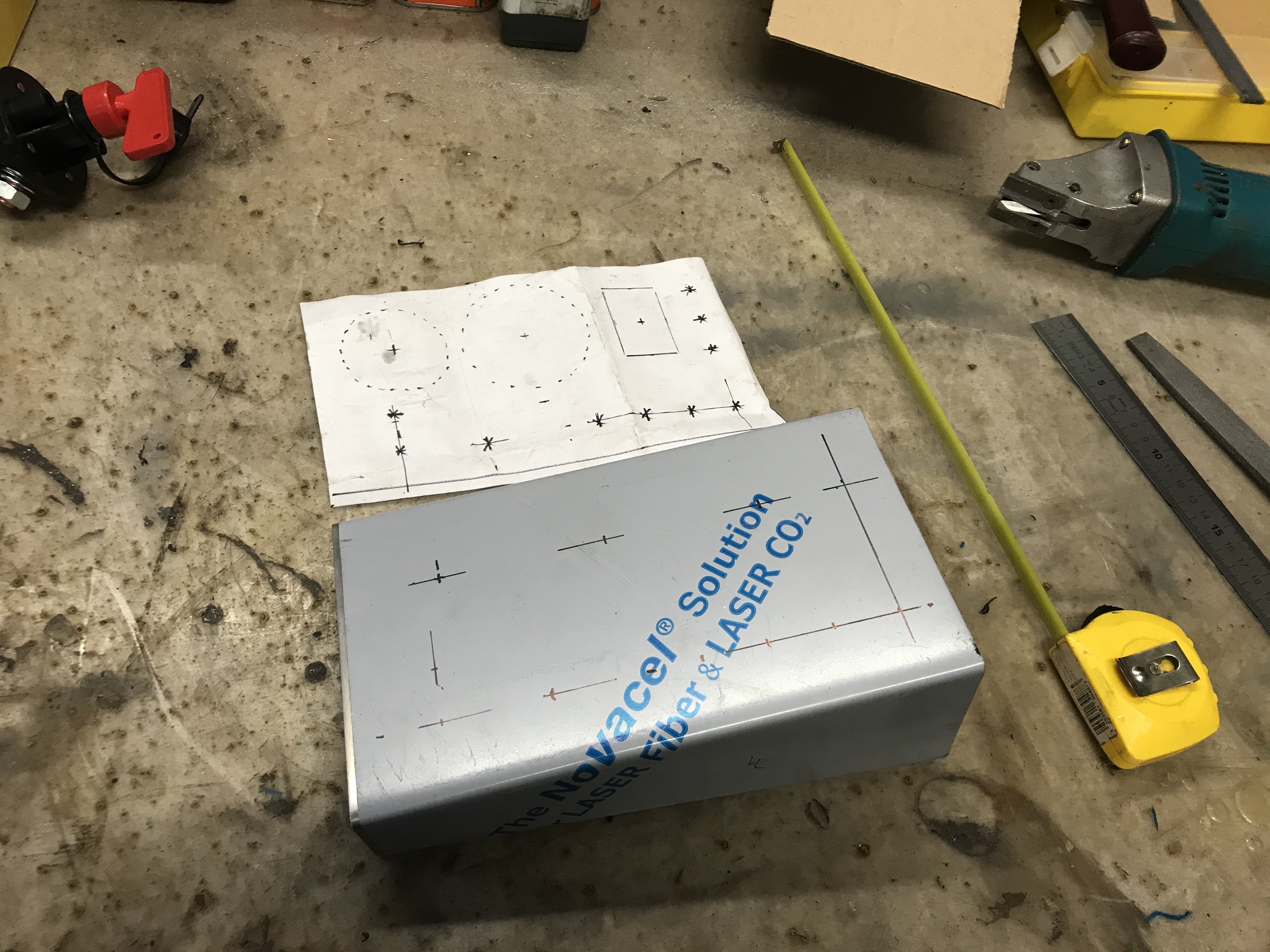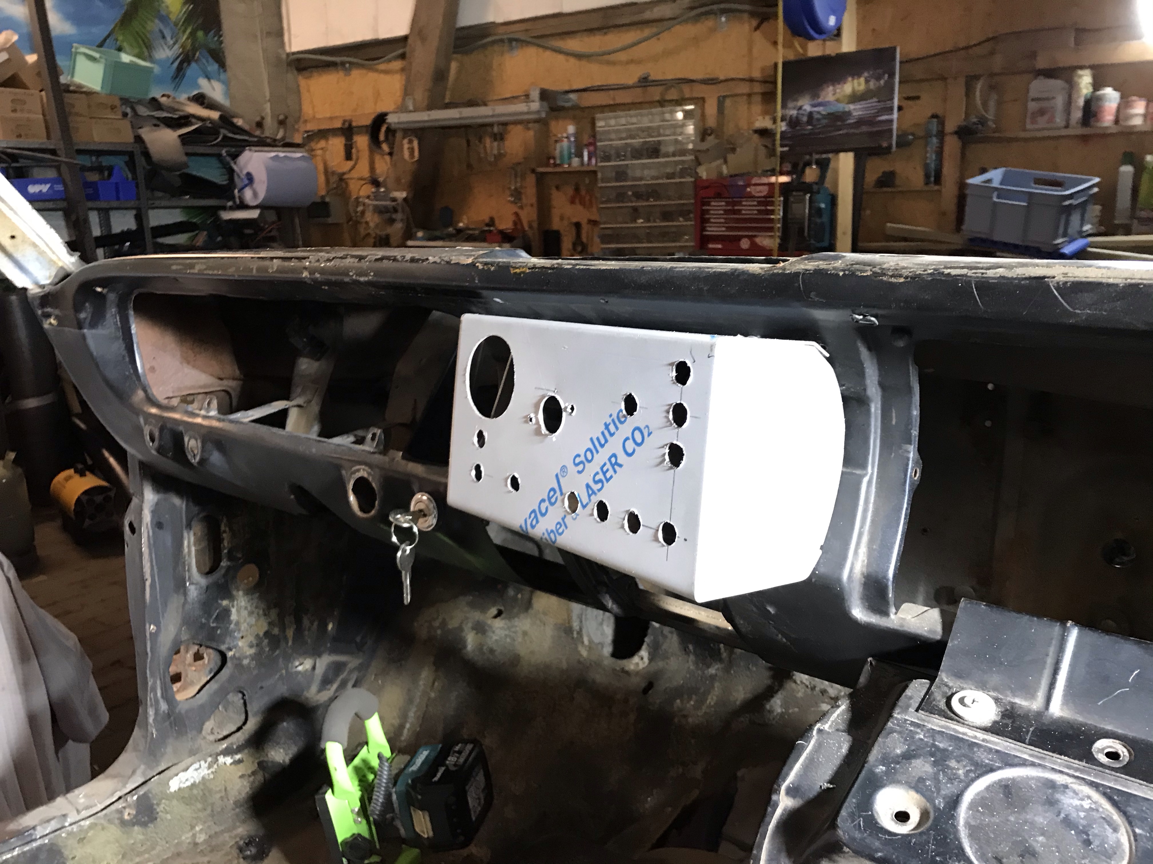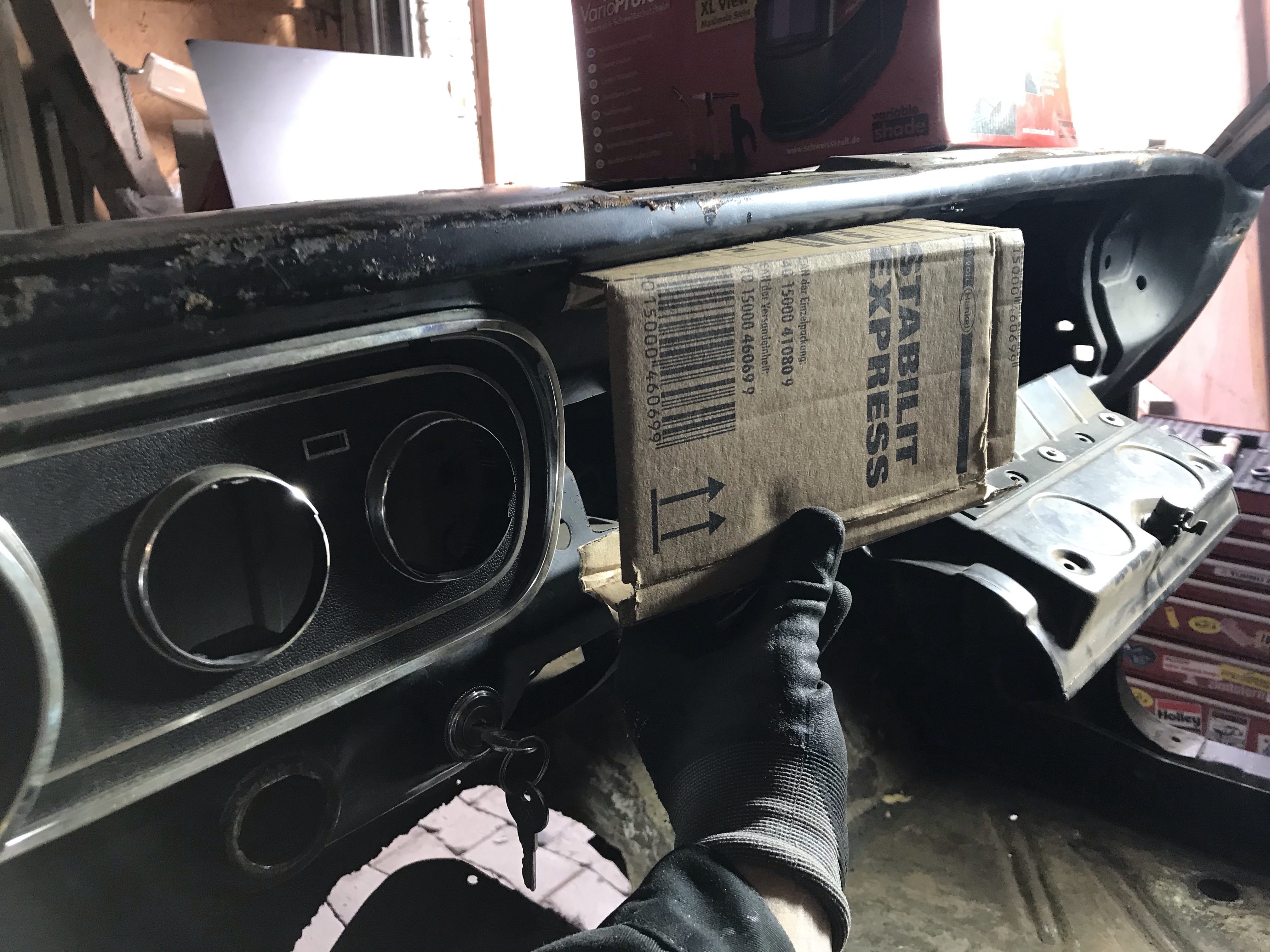 Um Missinterpretationen gleich Einhalt zu gebieten: der Deckel wird angeschraubt, das Tape dient nur zu Fixierung, während ich vom Fahrzeuginneren die Löcher angezeichnet habe 😉.